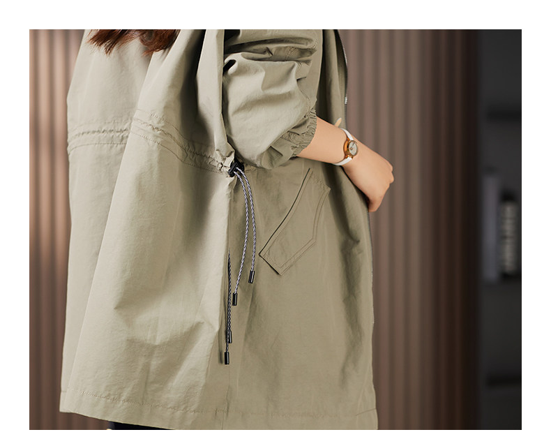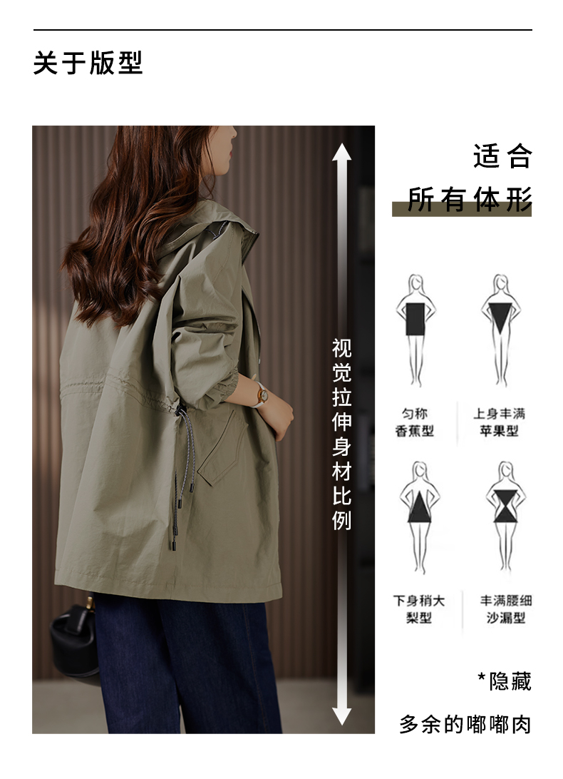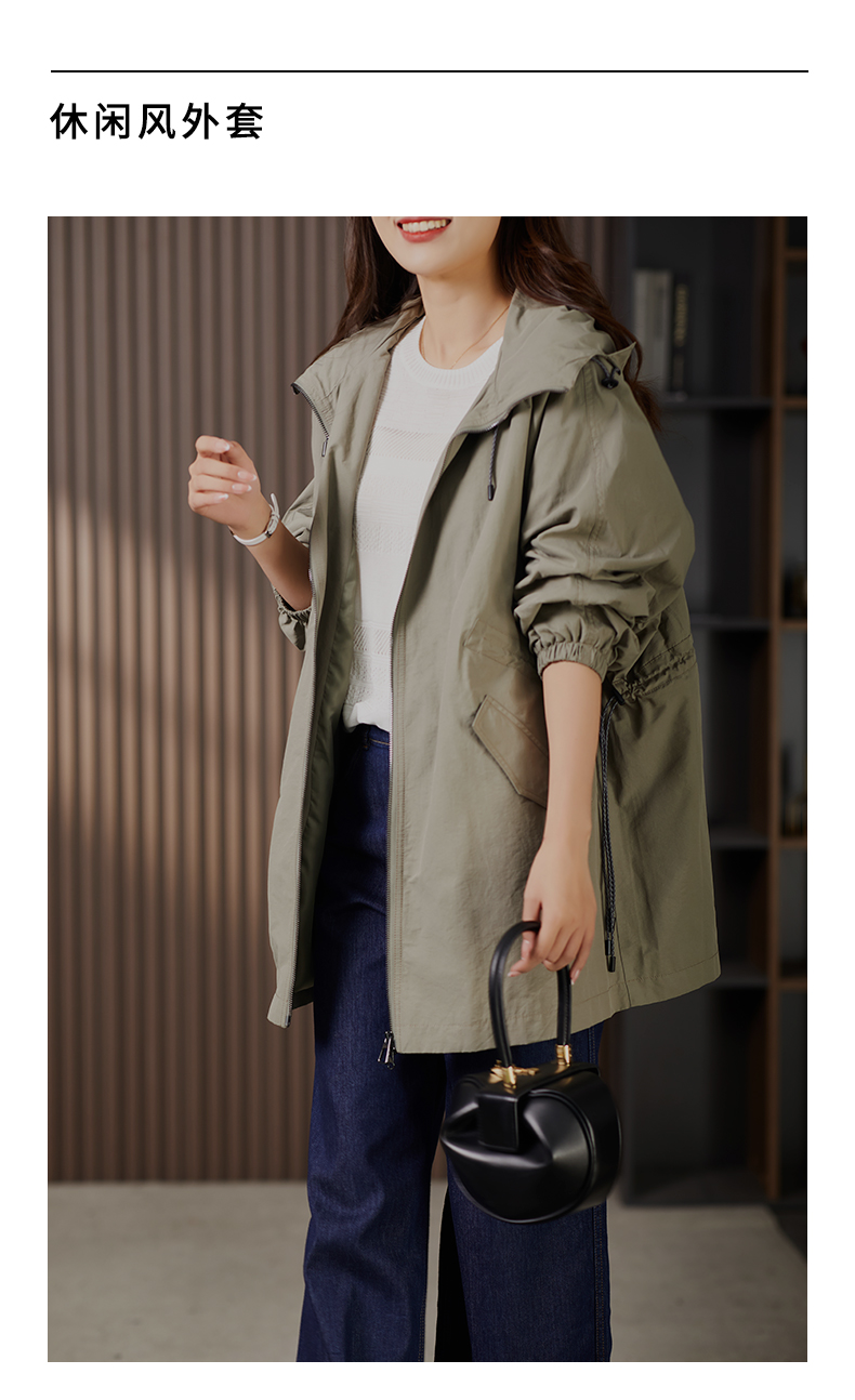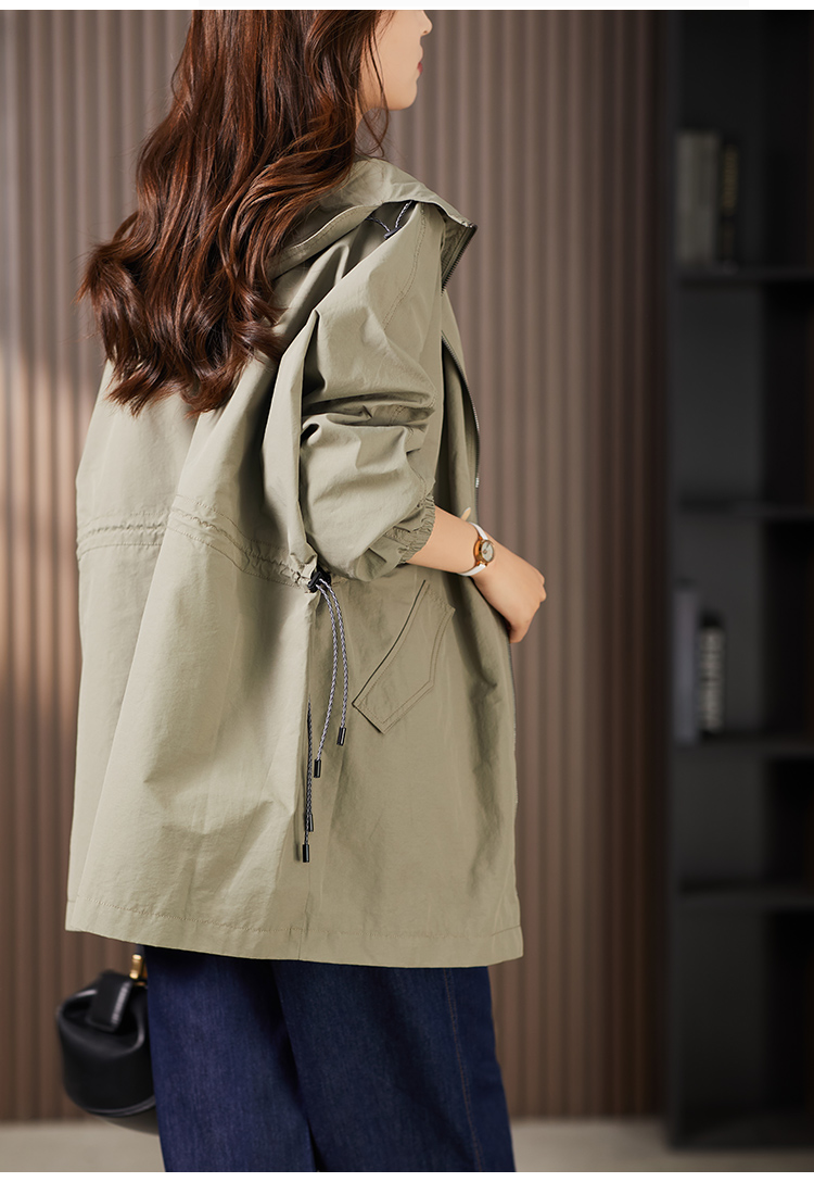 89913原形设计感休闲连帽廓形风衣女2024春季新款宽松显瘦抽绳外套上衣