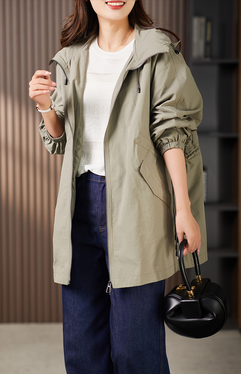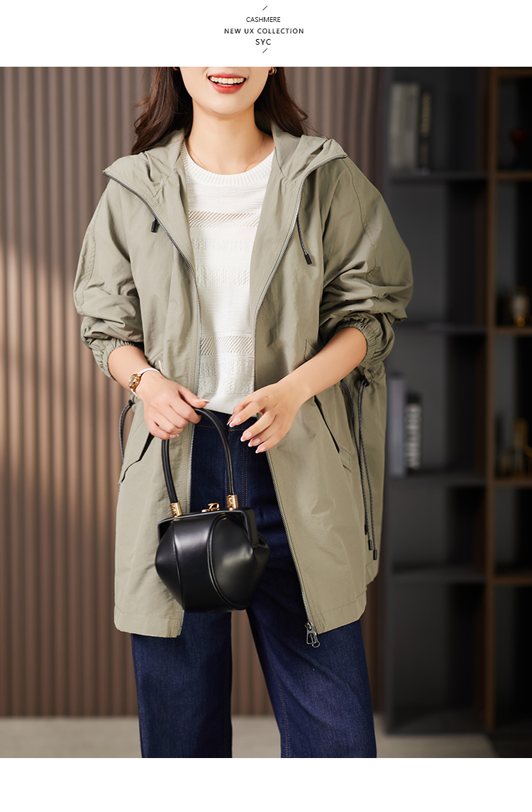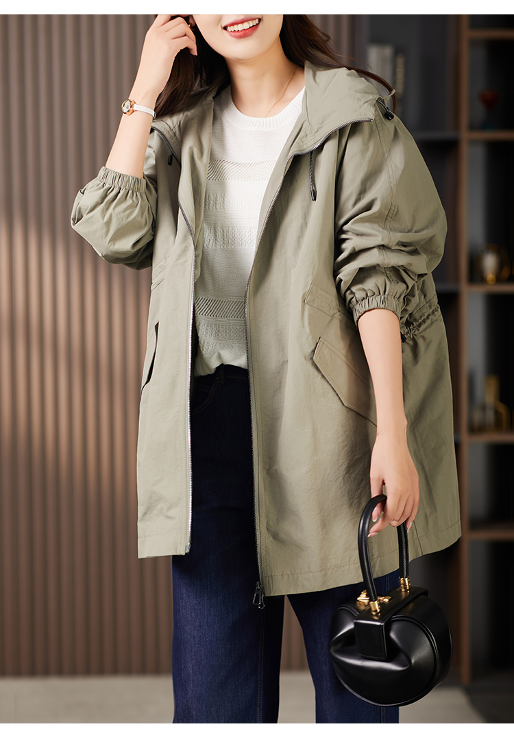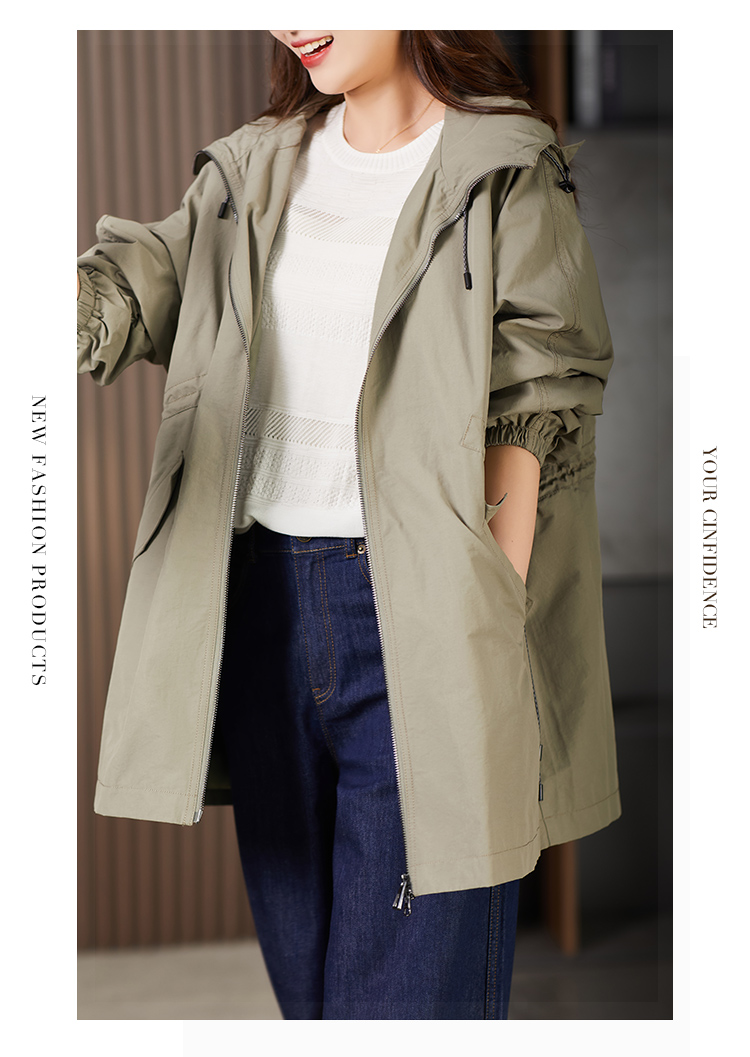 89913原形设计感休闲连帽廓形风衣女2024春季新款宽松显瘦抽绳外套上衣