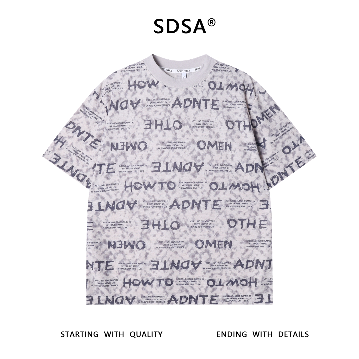 T3531夏季高级感新款男士扎染满印字母圆领短袖T恤小众设计时尚上衣