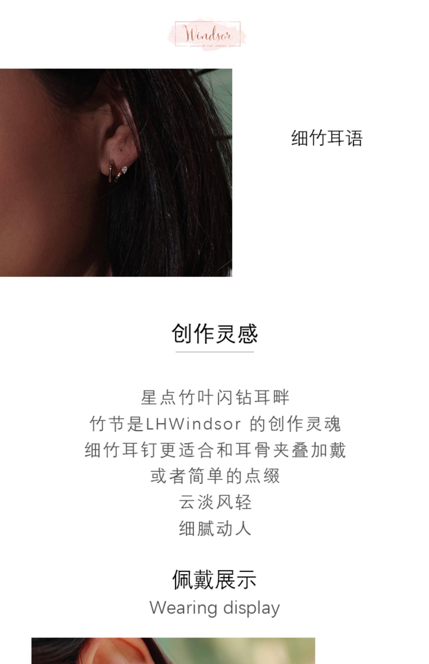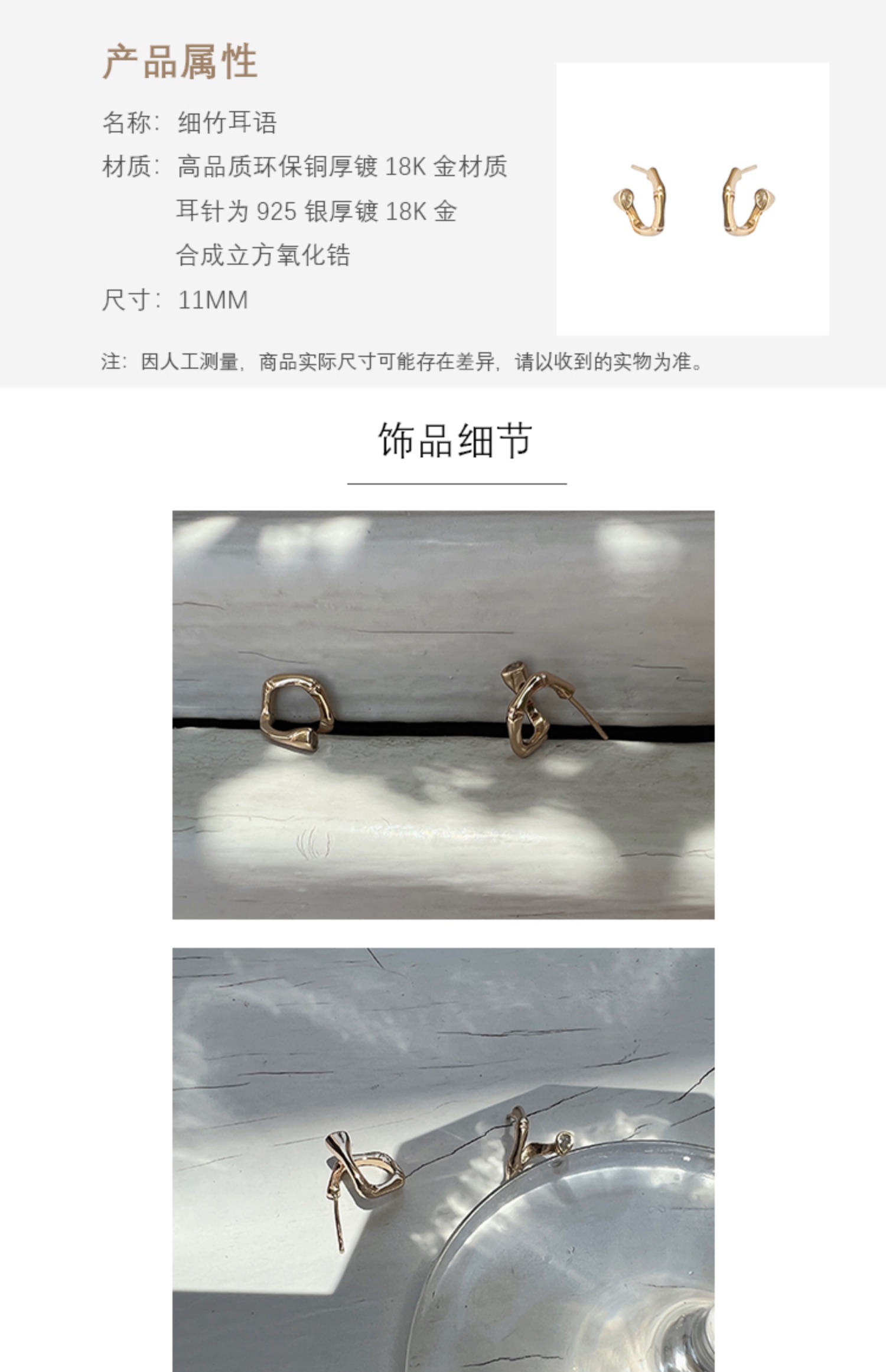 LHWINDSOR 细竹耳语耳钉经典竹节系列耳饰复古金色叠戴饰品
