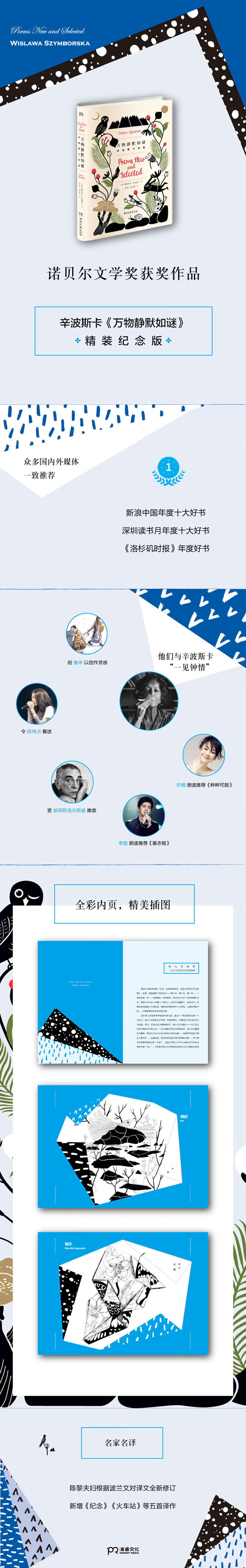 译者根据波兰文,对译文做了全新修订,并增加了《不会发生两次》《纪念》《复活者走动》《火车站》等5首译作。内页全彩印刷,新增10幅精美插画。