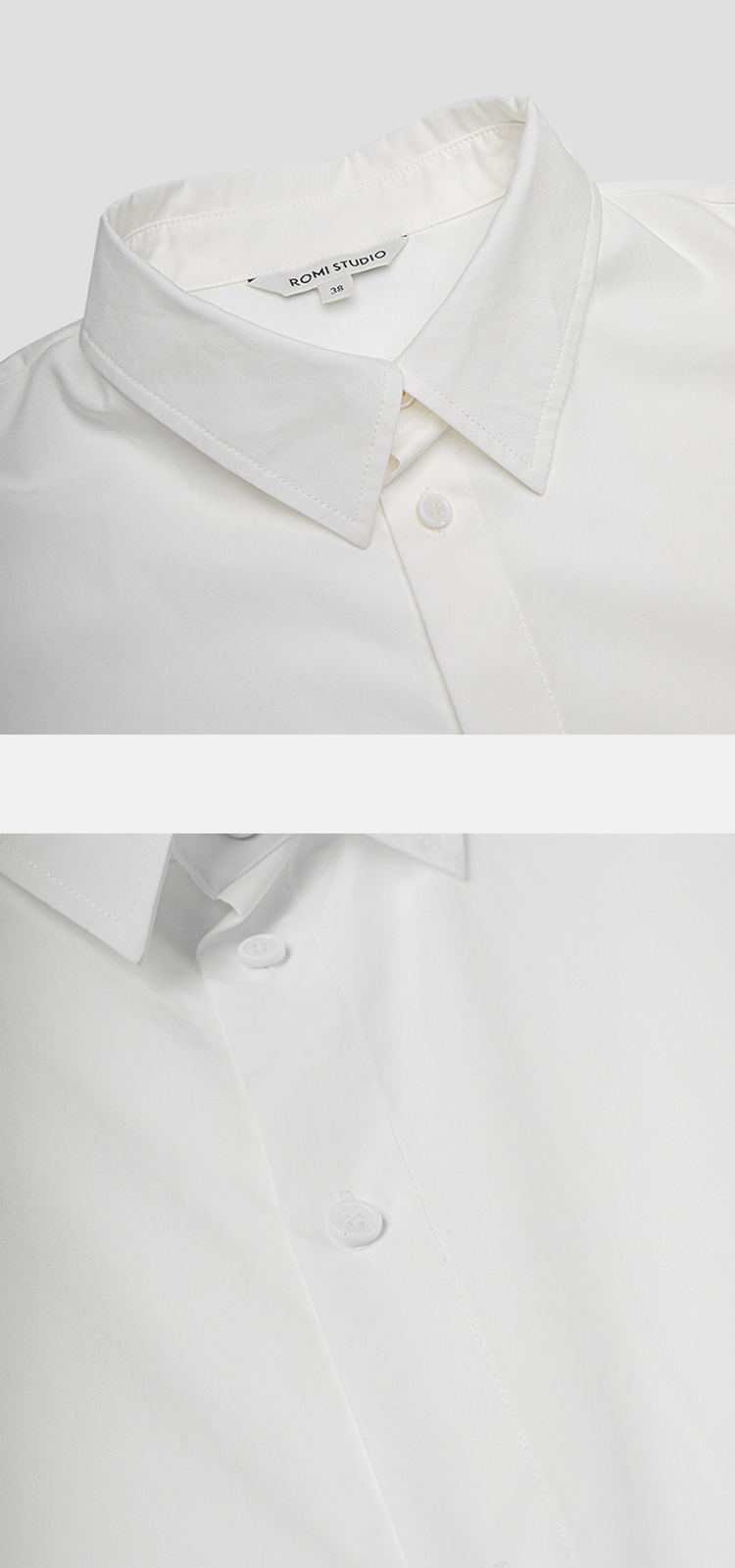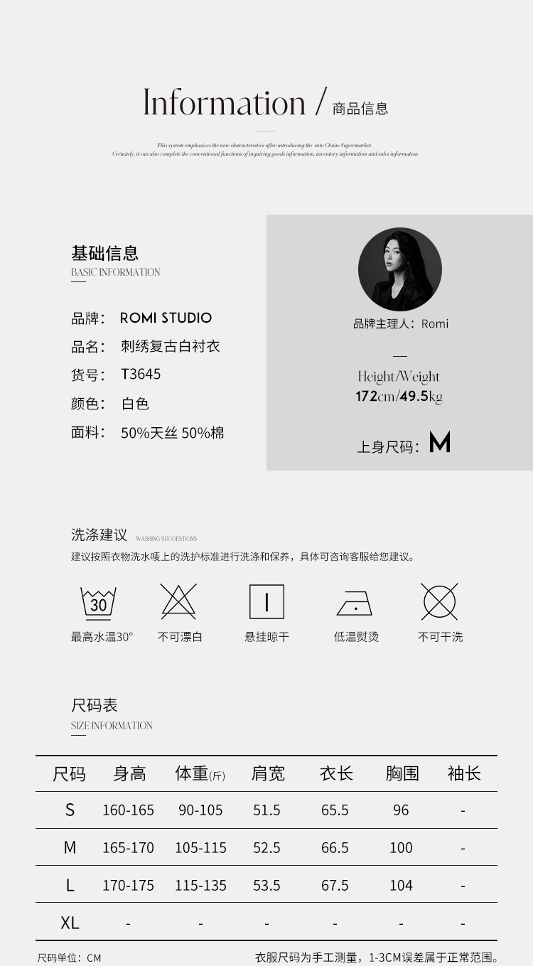 ROMI STUDIO"夏日旅行箱"纯色立体裁剪落肩袖刺绣复古白衬衣T3645