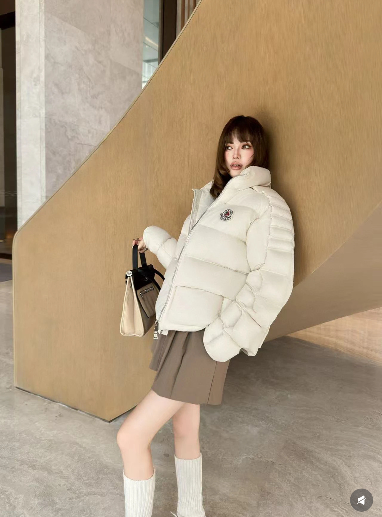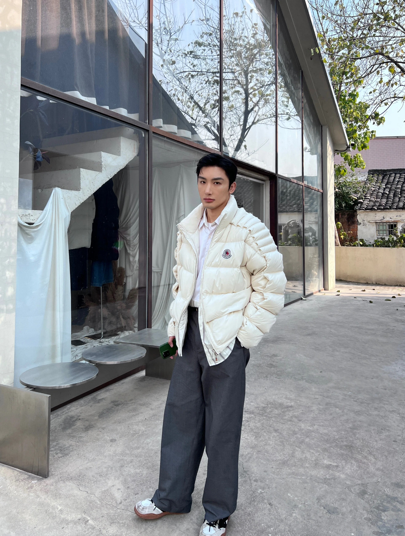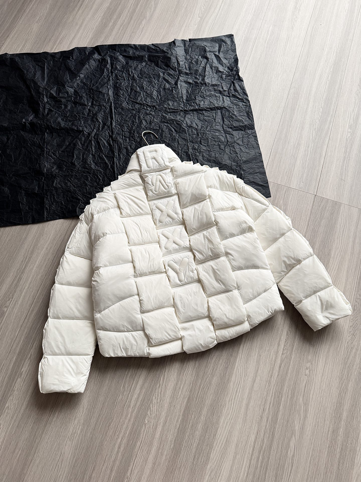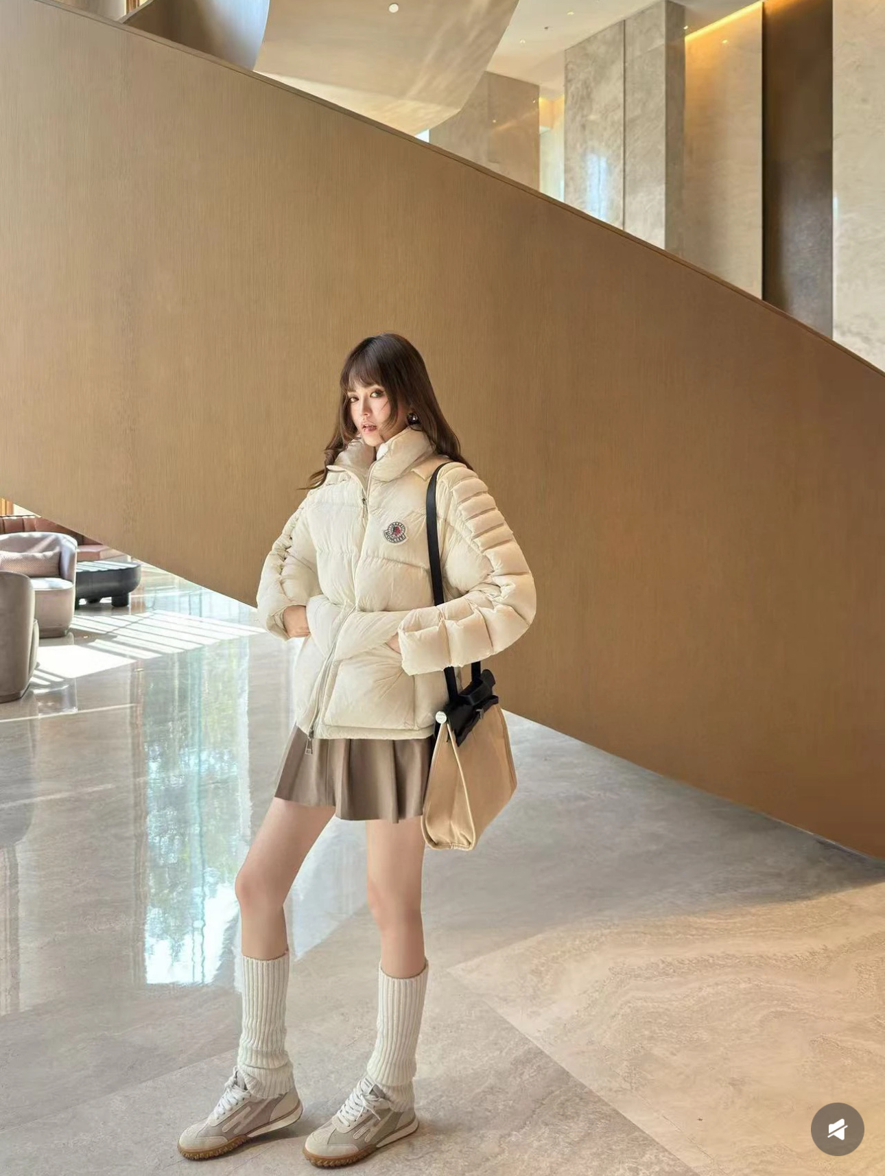 蒙口 x C R瑞希联名 梦幻阶梯羽绒服 用编织结构做羽绒服整体采用立体绗缝工艺,只有原厂的轻质抗撕裂面料才能经得起这样的折腾 ,阶梯段的设计需要工人纯手工折边压线 ⚠️羽绒是非常容易跑动的材质,需要确保每一格在车线的时候羽绒固定住,才能有每一格阶梯都均匀饱满的效果,但凡绒用差点达不到这种蓬松度或者车线的时候绒不均匀都没有阶梯的这种饱满感