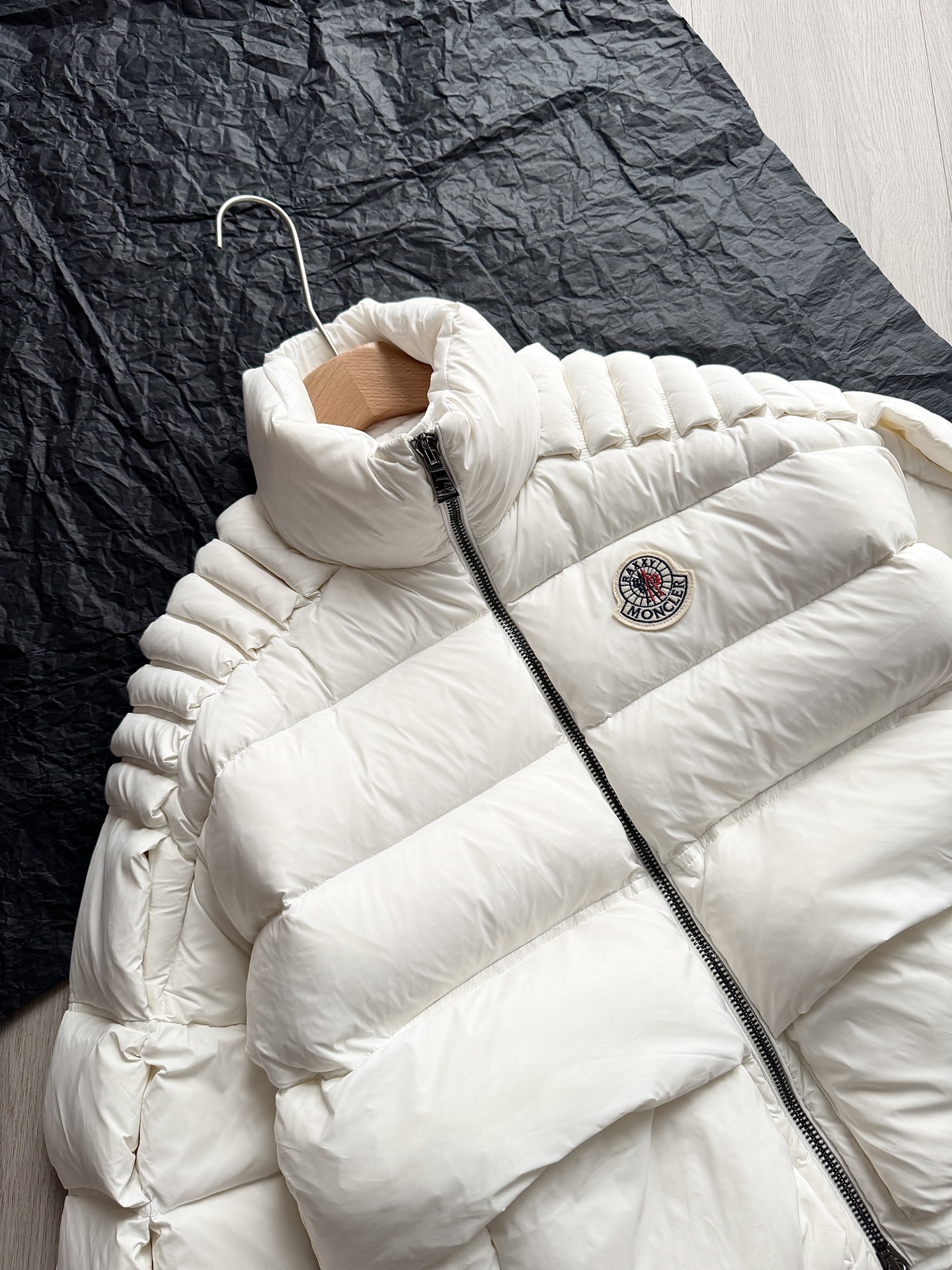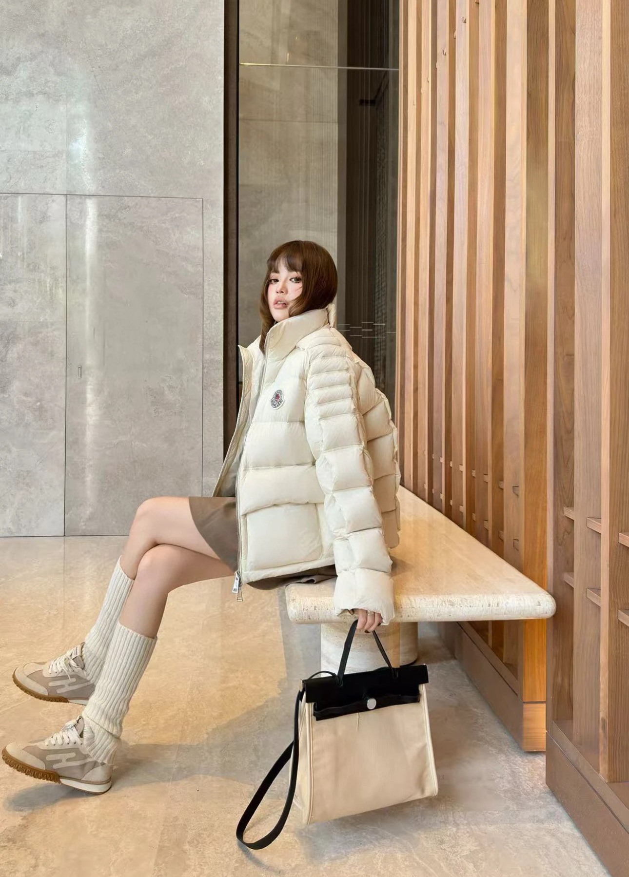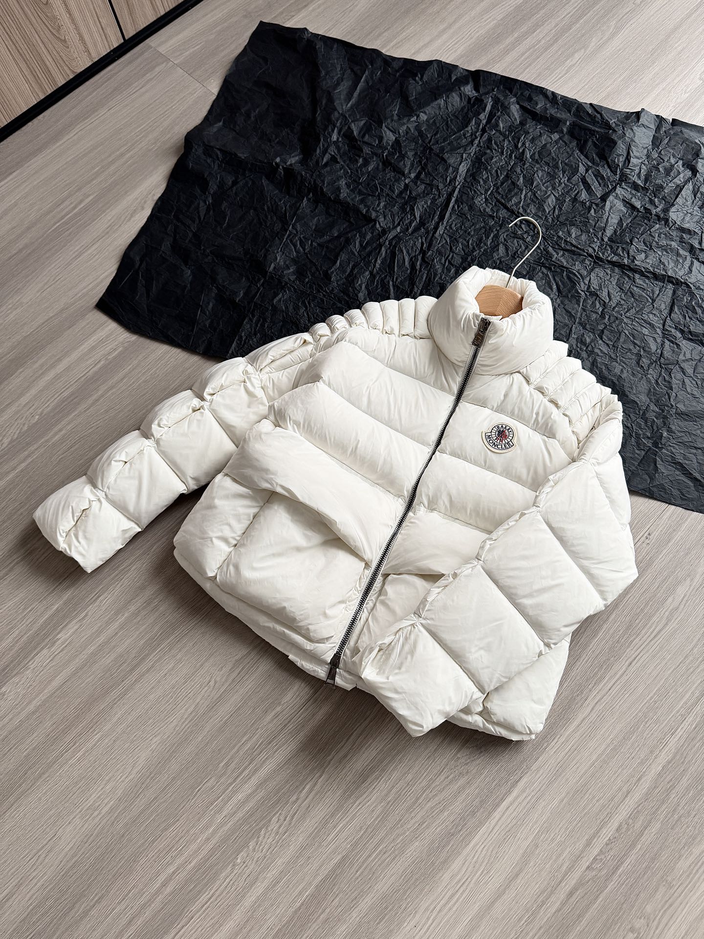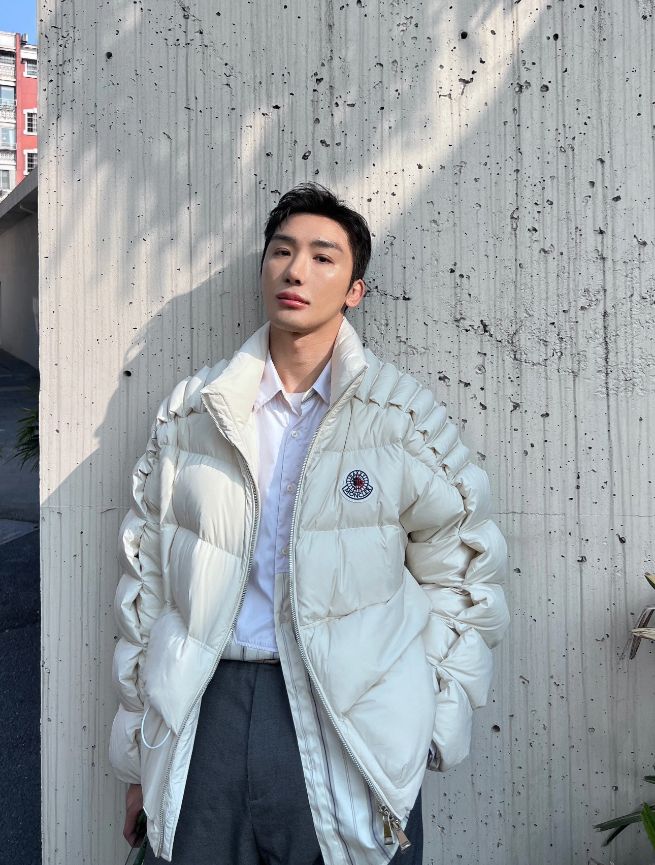 蒙口 x C R瑞希联名 梦幻阶梯羽绒服 用编织结构做羽绒服整体采用立体绗缝工艺,只有原厂的轻质抗撕裂面料才能经得起这样的折腾 ,阶梯段的设计需要工人纯手工折边压线 ⚠️羽绒是非常容易跑动的材质,需要确保每一格在车线的时候羽绒固定住,才能有每一格阶梯都均匀饱满的效果,但凡绒用差点达不到这种蓬松度或者车线的时候绒不均匀都没有阶梯的这种饱满感