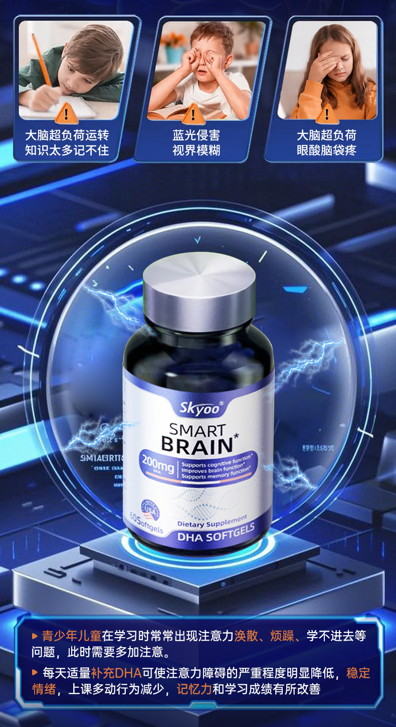 DHA补脑增强学生儿童青少年记忆力进口神经酸藻油鱼油官方旗舰店