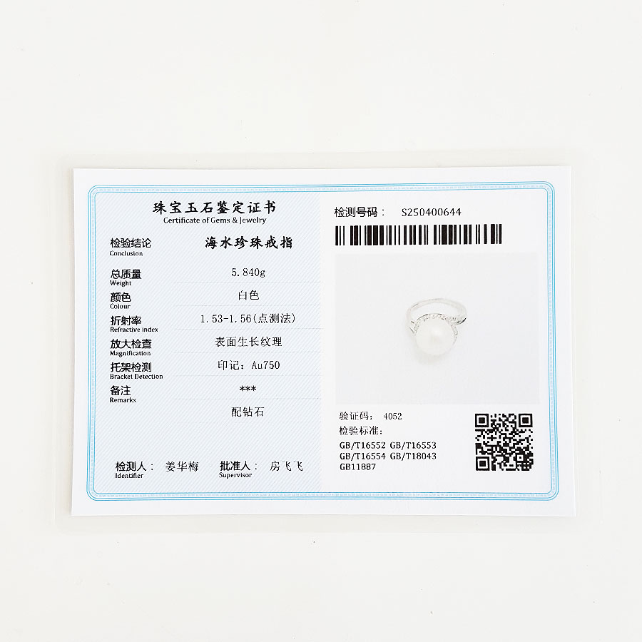 【天然正品】AU750白金豪镶钻镶天然近完美约11.3MM澳白海水珍珠戒指女士现售价:3480!180425NJM11