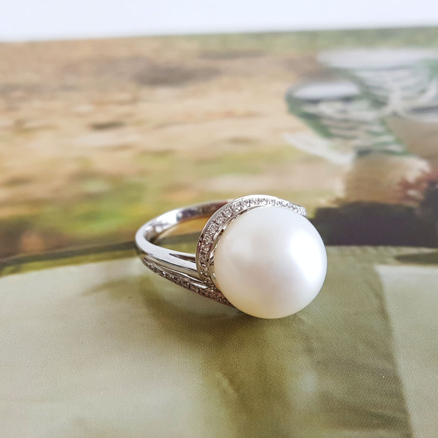 名称 | AU750白金豪镶钻镶天然近完美约11.3MM澳白海水珍珠戒指 |