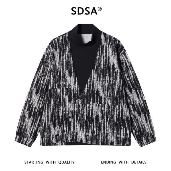 23167SDSA男士秋冬新款痞帅男装美式复古扎染撞色立领假两件卫衣百搭潮