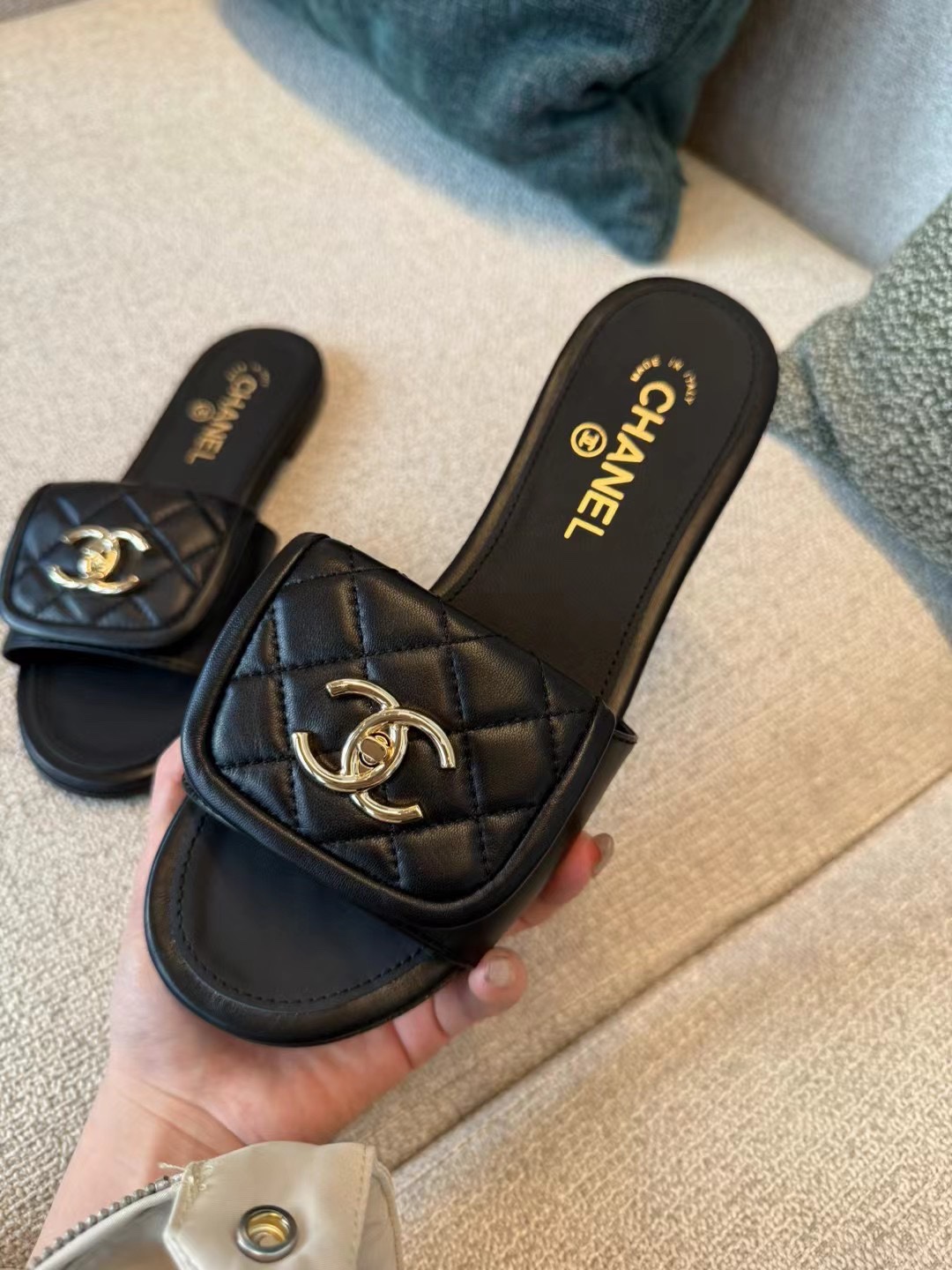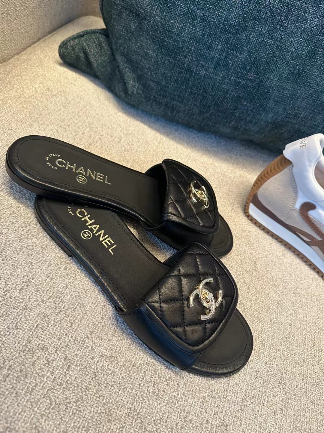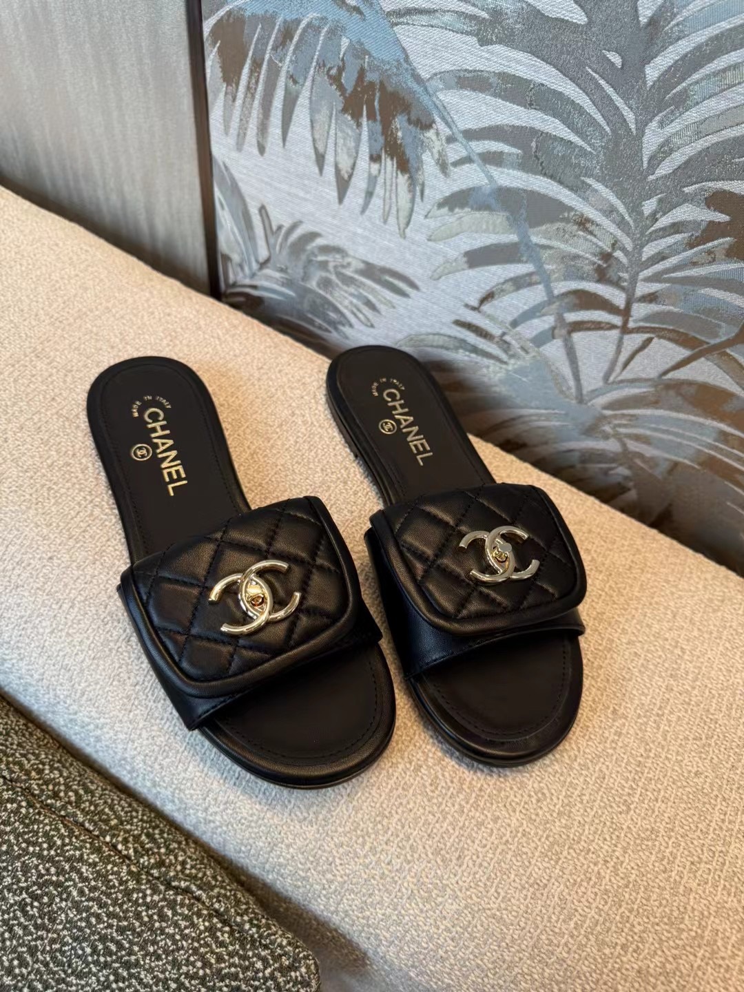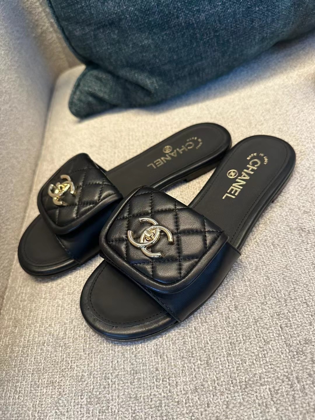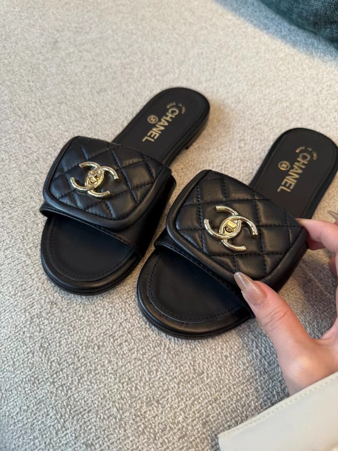 25ss早春Chane* 新款菱格书包扣拖鞋!菱格书包扣终于出拖鞋款了,小羊皮材质非常软,上脚不压脚背很好穿!可盐可甜的时间,休闲风甜美风都能轻松Hold住!