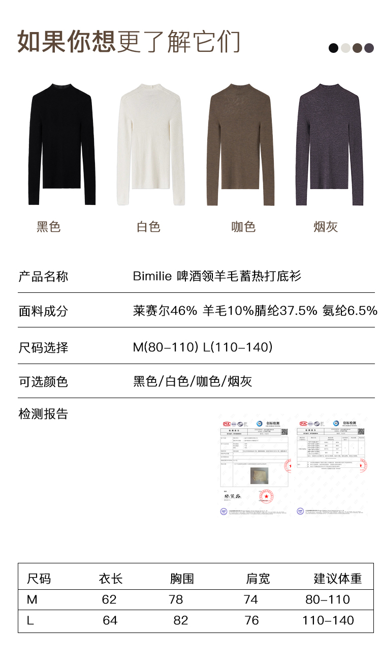 Bimilie啤酒领羊毛蓄热打底衫 商品图4