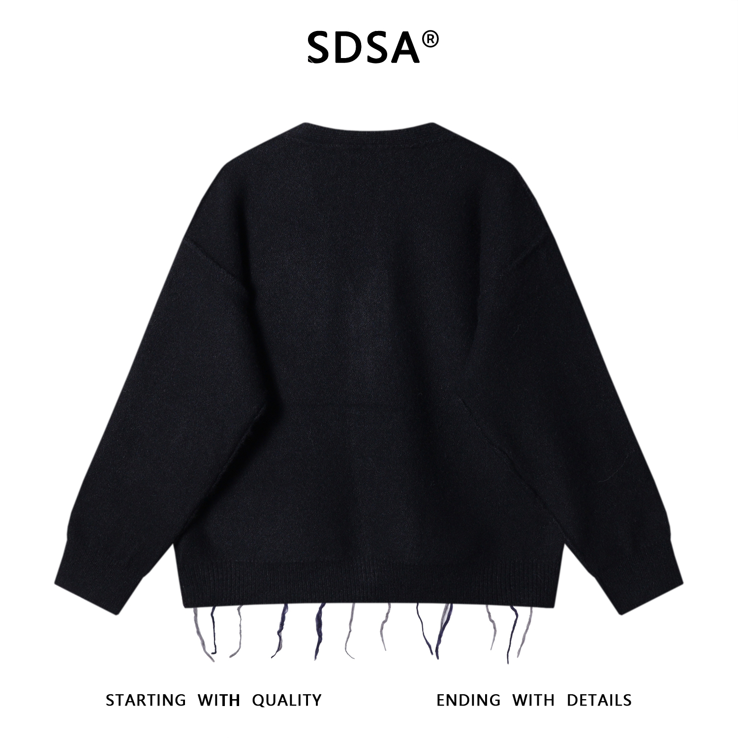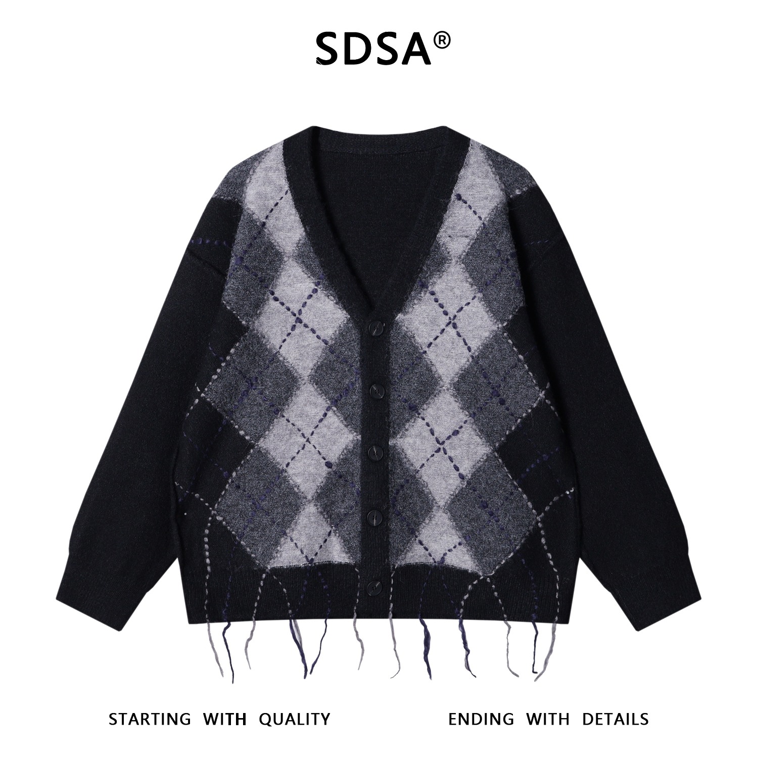 91289SDSA男士秋冬新款痞帅男装潮牌复古菱形格V领针织衫流苏开衫毛衣