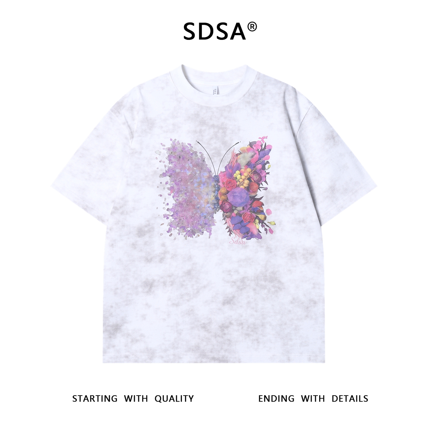 T3576夏季高级感新款男士简约胸前蝴蝶印花圆领短袖T恤百搭时尚上衣