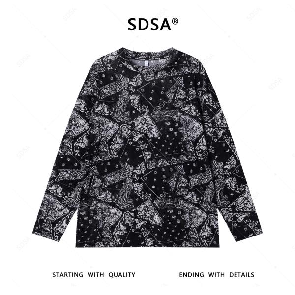 T2409夏季新款时尚个性美式扎染镂空圆领长袖T恤百搭潮流宽松套头上衣