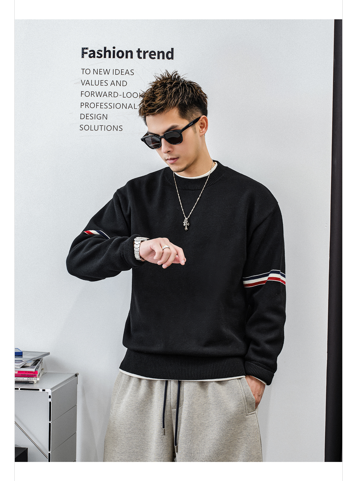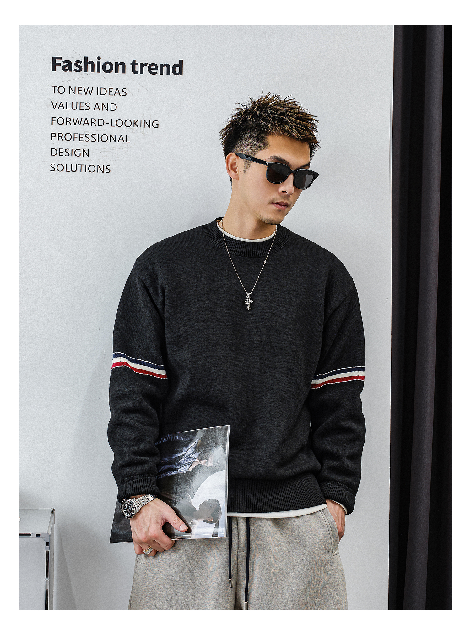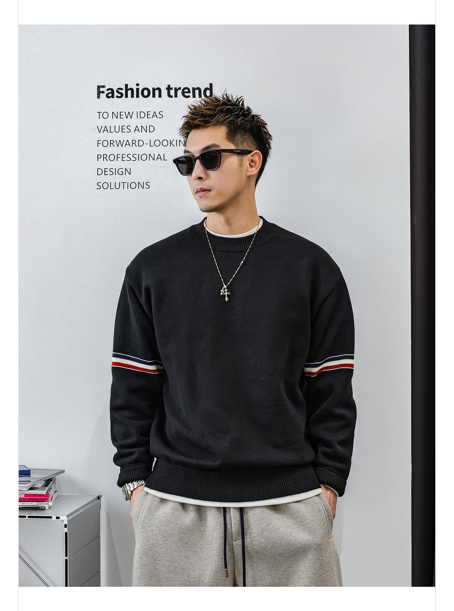 徐太浪【653g重磅 拼色条纹】通勤毛衣男冬季男装内搭针织衫上衣
