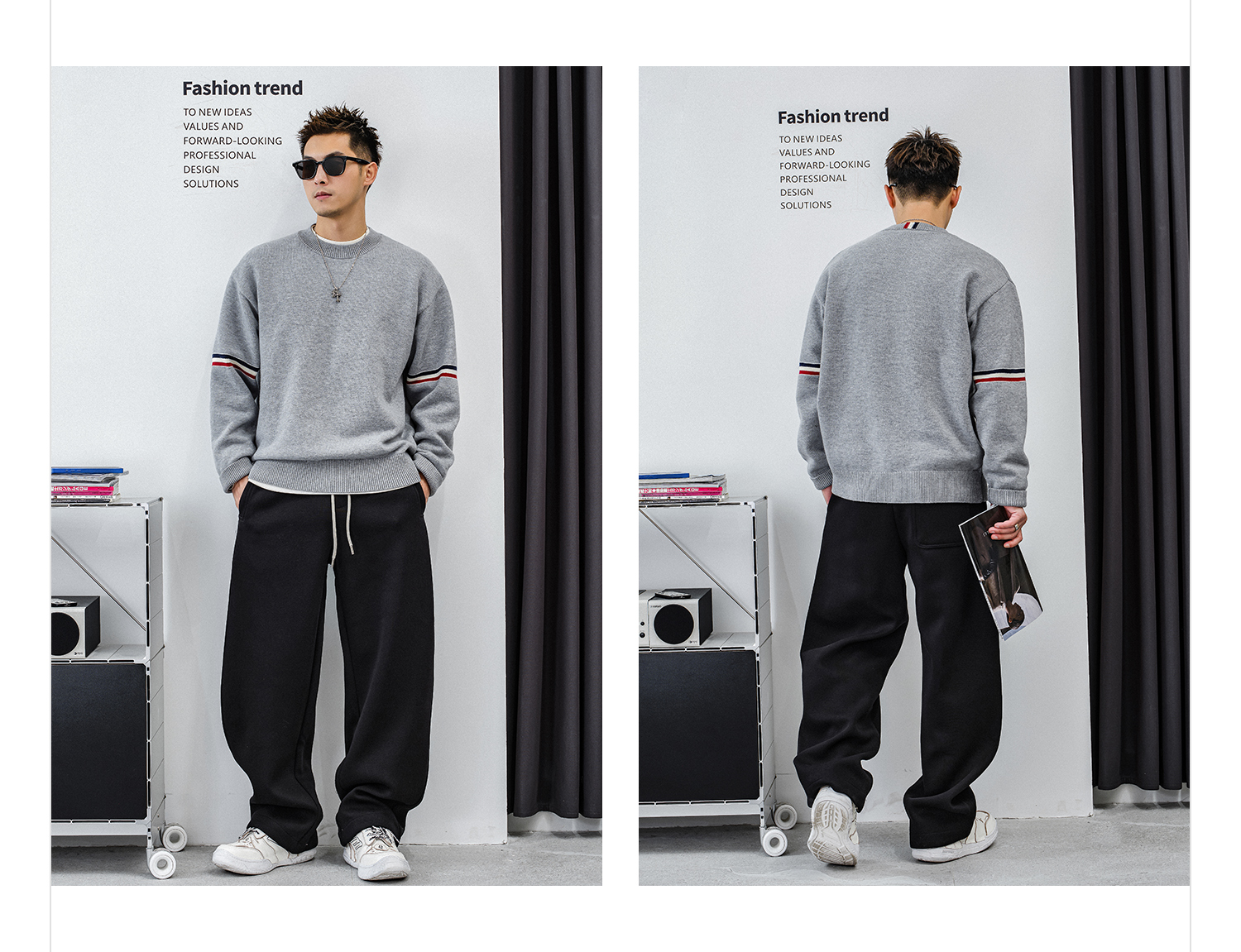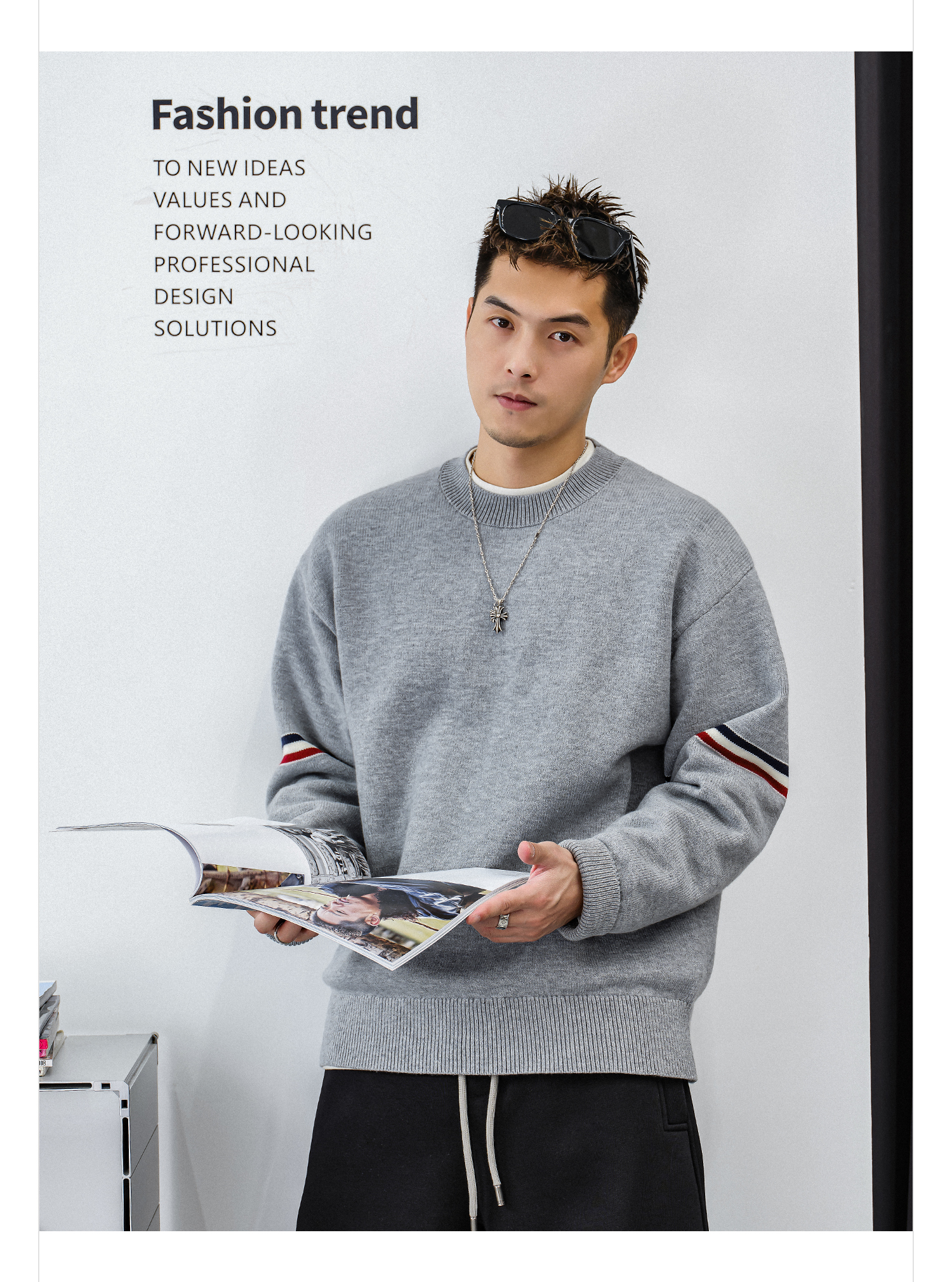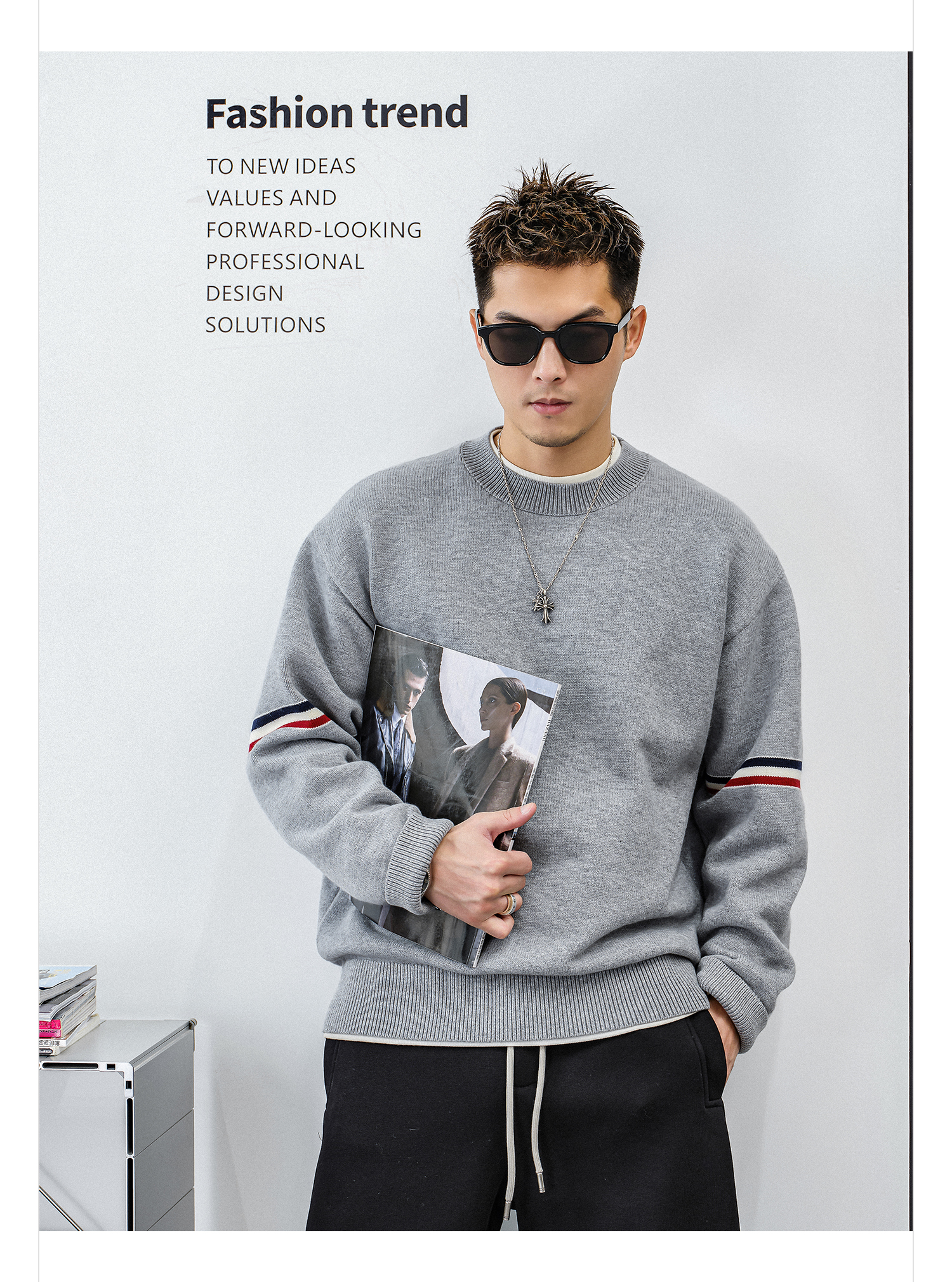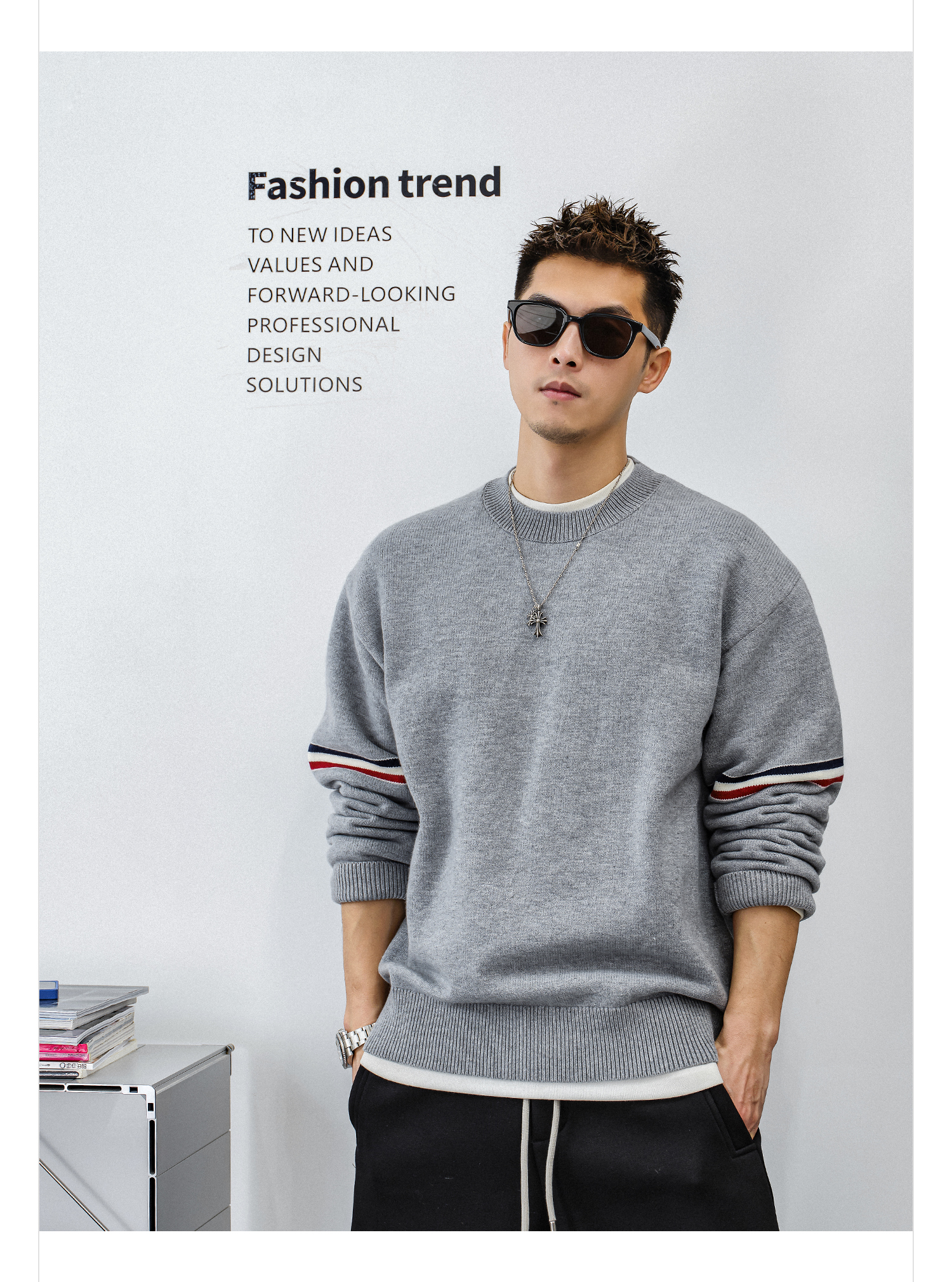 徐太浪【653g重磅 拼色条纹】通勤毛衣男冬季男装内搭针织衫上衣