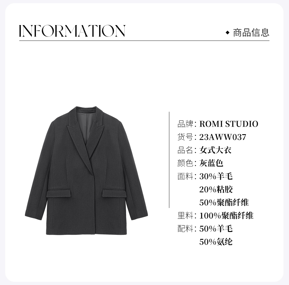 ROMI STUDIO“quiet luxury”羊毛混纺立裁修身西装外套23AWW037