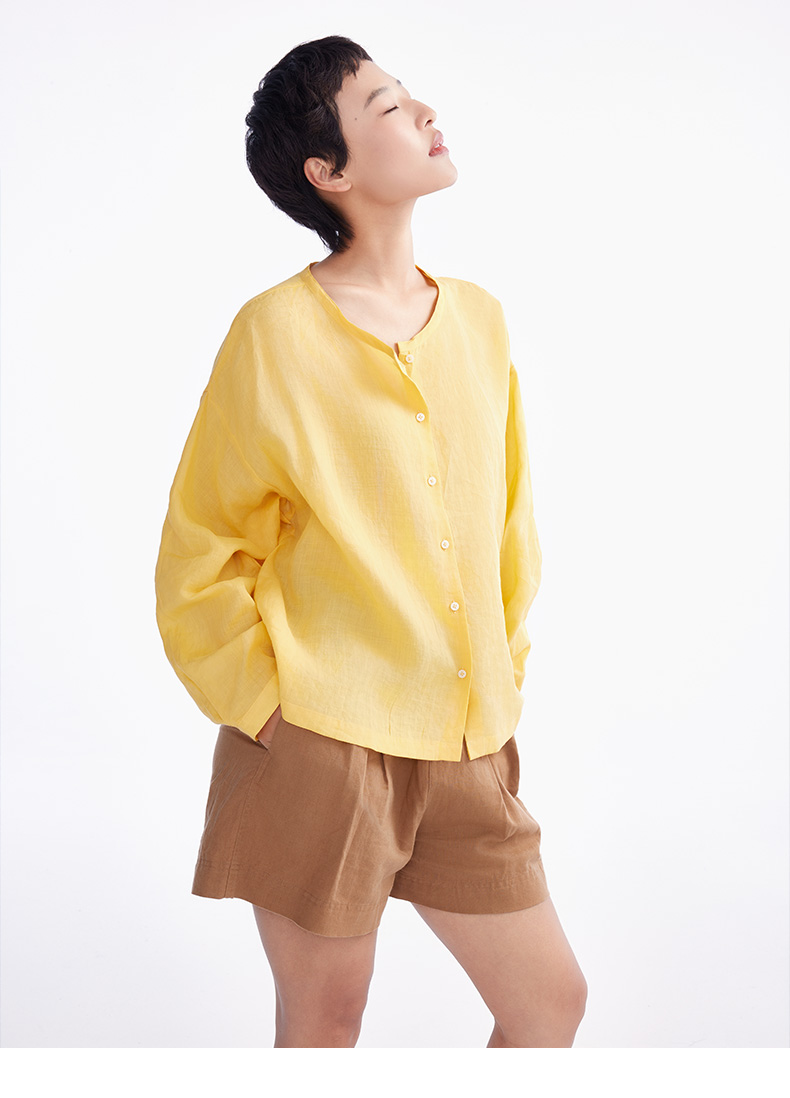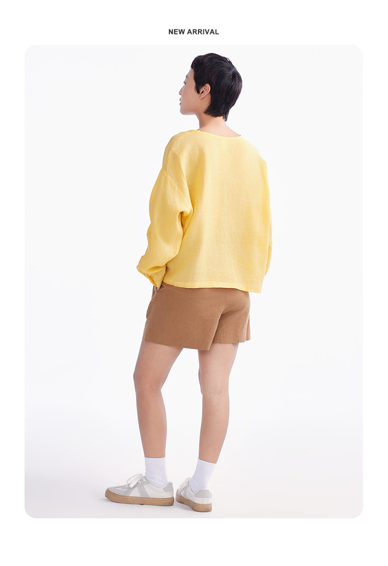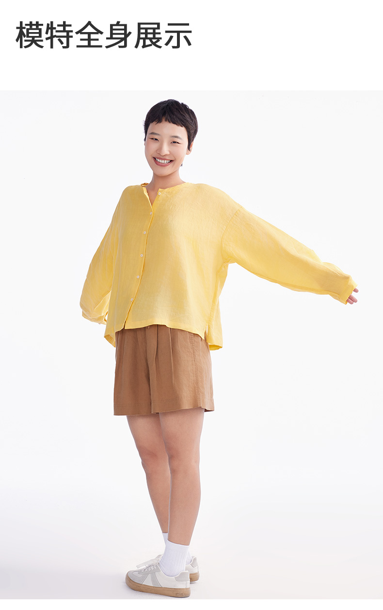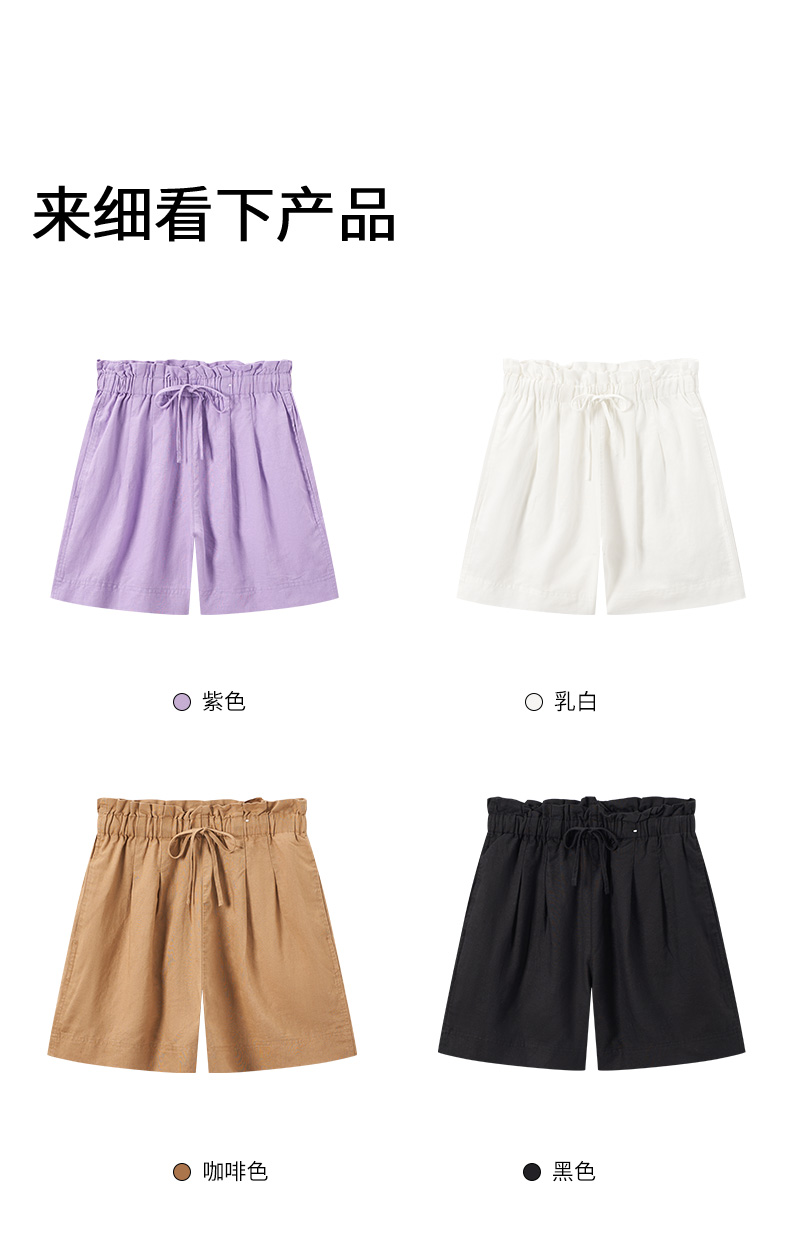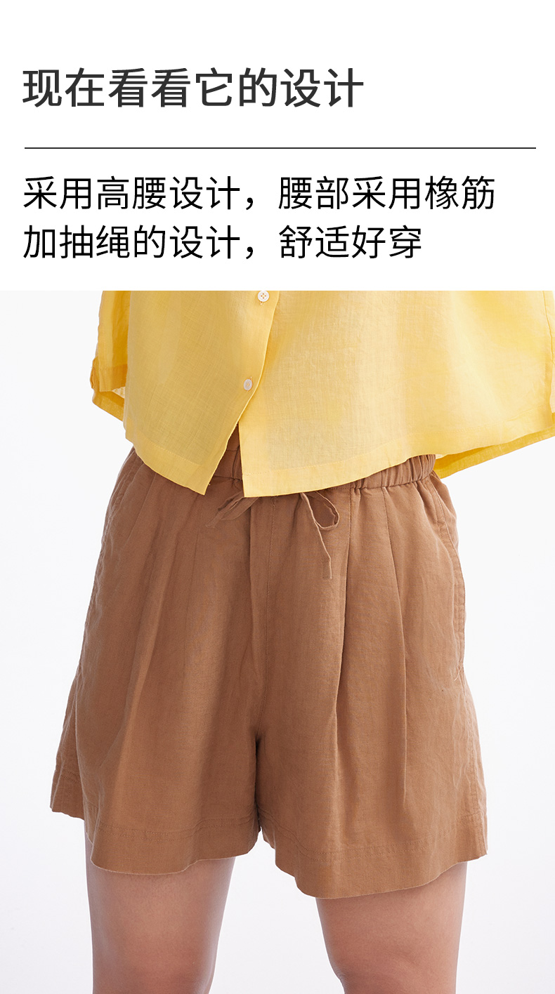 【短裤】“国麻系列”柔软亲肤透气透湿麻感A字高腰短裤 1N2224203