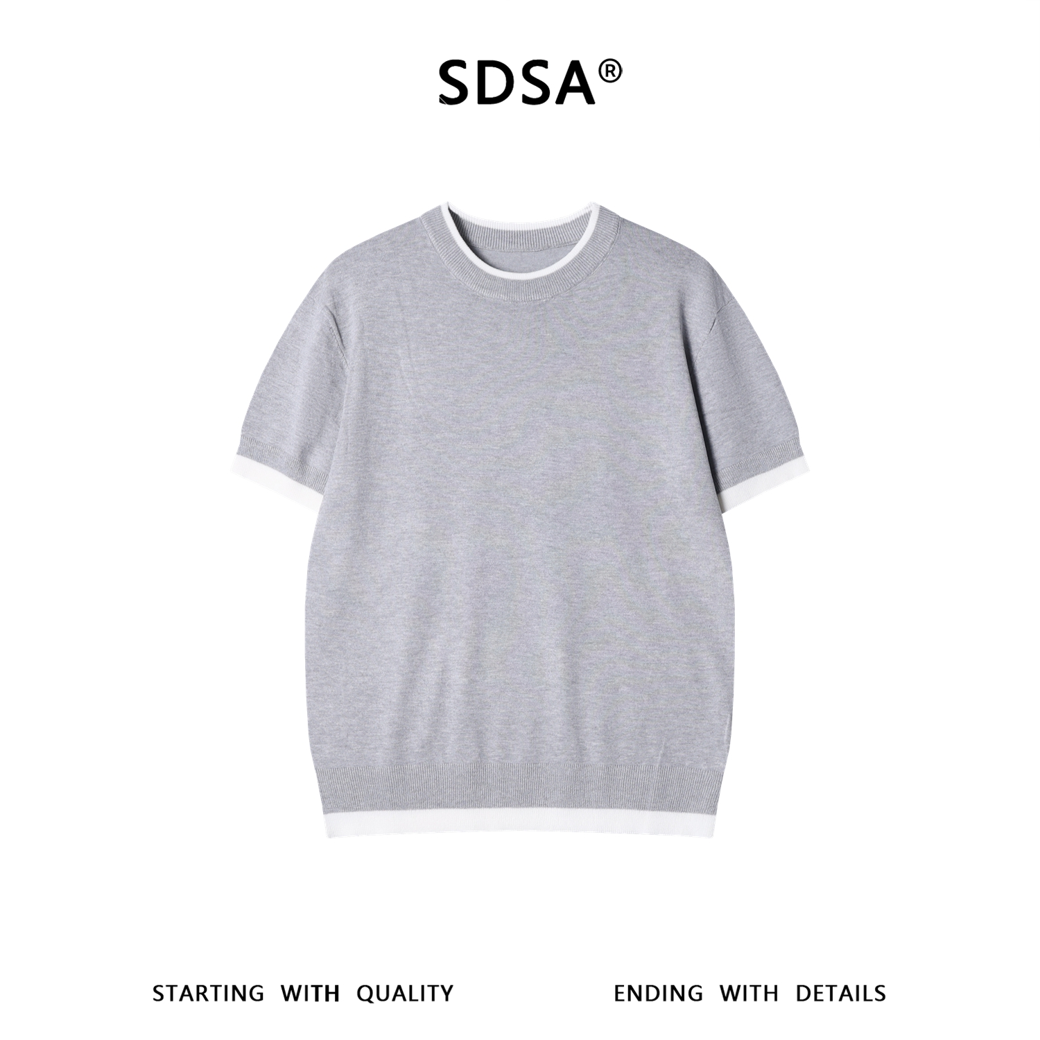 SDSA男装2026新款轻奢基础款撞色设计针织圆领短袖T恤百搭休闲