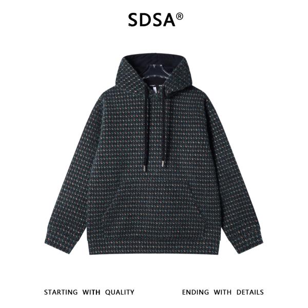 WY1423SDSA男士秋冬新款痞帅男装韩版简约绒毛撞色格子连帽卫衣休闲百搭