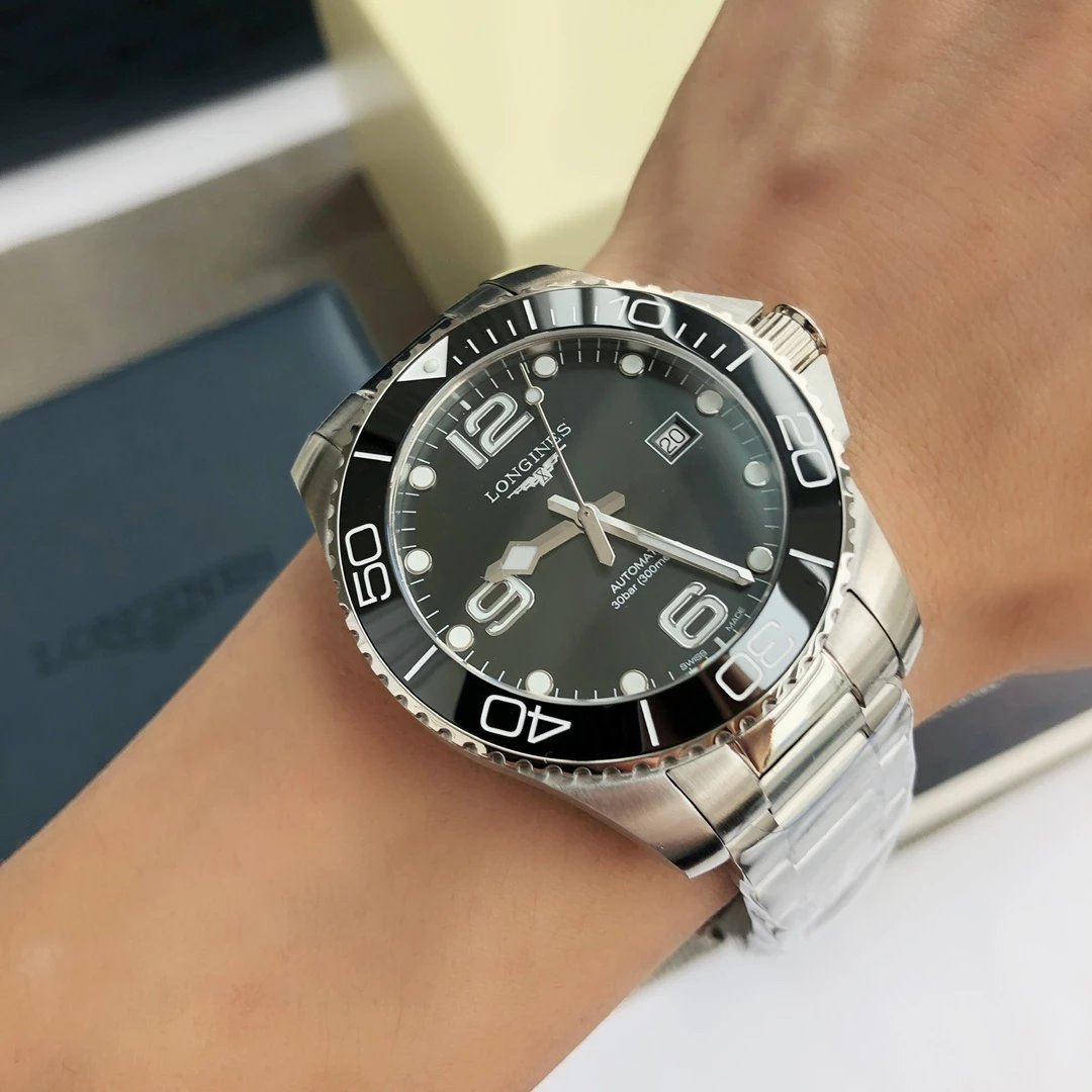浪琴-Longines,康卡斯潜水系列男士腕表,浪琴中的水鬼,防水达300米,表径43mm,自动机械2824机芯型号S T 1900,后盖原装壳套、简约时尚,商务休闲。旋入式把的,陶瓷表圈,双折式安全表扣,带潜水延展装置;蓝宝石镜面,两面带多层防反光涂层