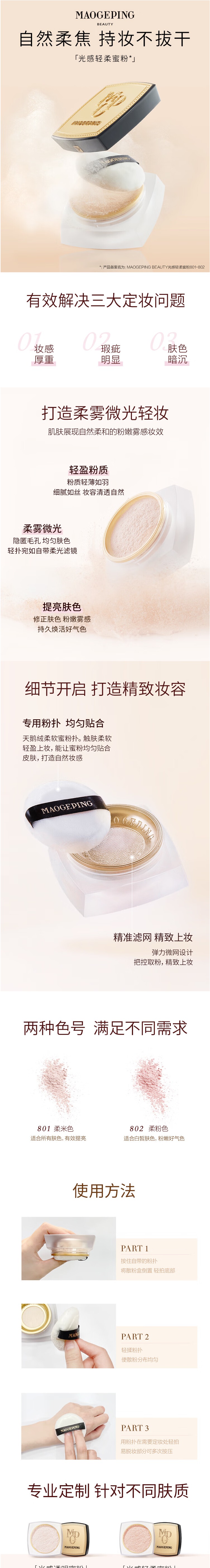 毛戈平光感轻柔蜜粉801#10g