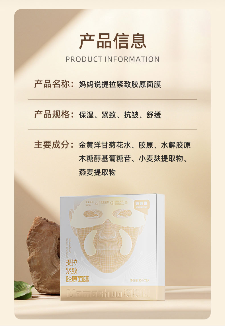 妈妈说提拉紧致胶原面膜 ·紧致轮廓、抗皱抚纹、维稳细腻、预防初老*3盒 (胶原流失、肌肤凹陷、松垮; 紫外线侵害、屏障损伤;表情纹、静态纹; 肌肤缺水、干纹、细纹明显)
