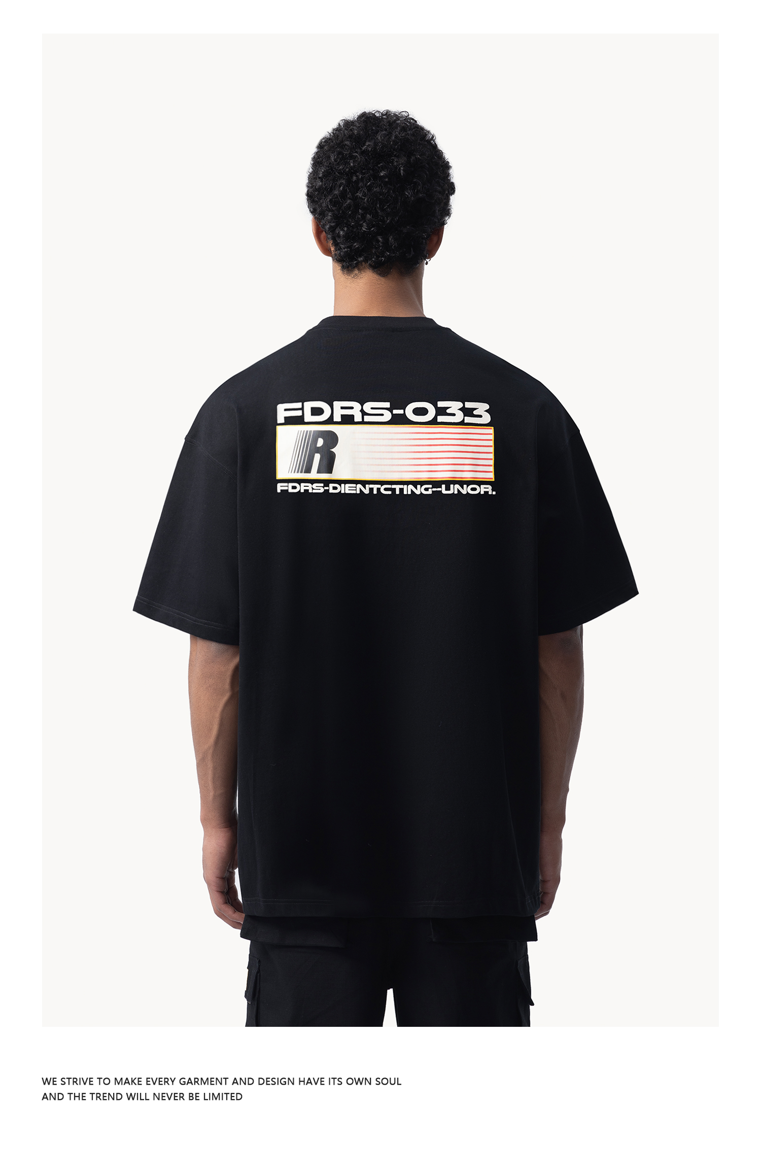 FDR 国潮美式高街绒面发泡印花短袖t恤男女夏季情侣宽松上衣体恤