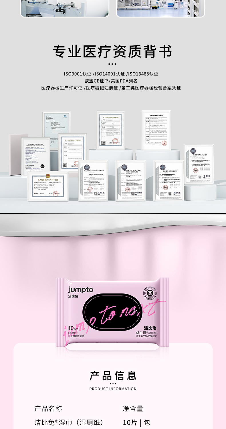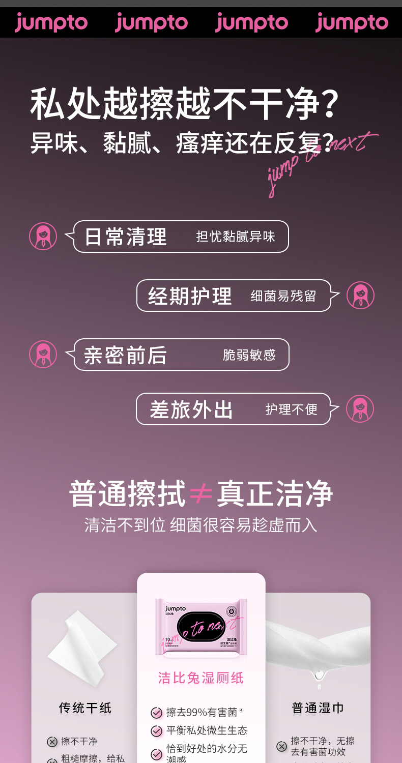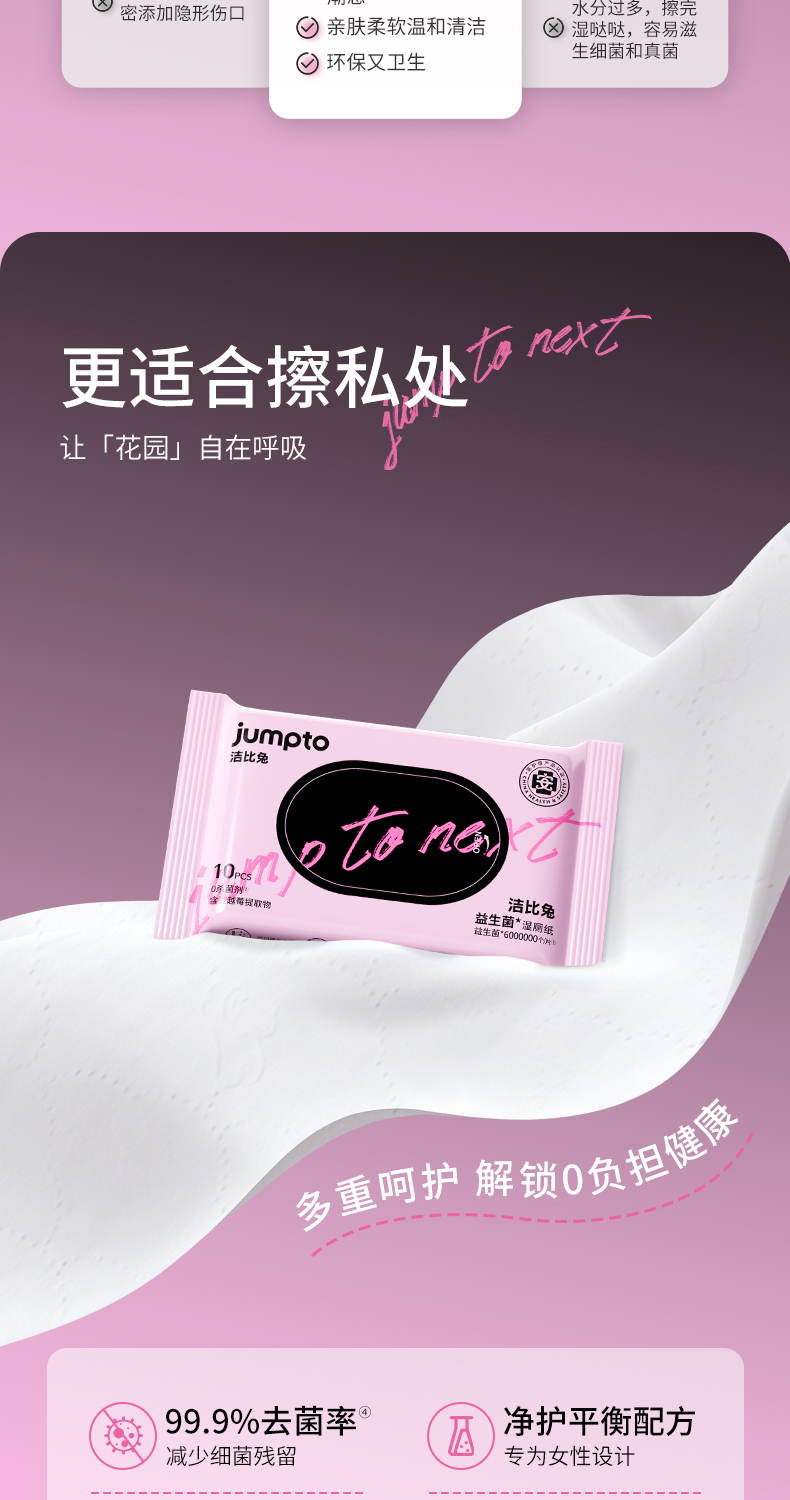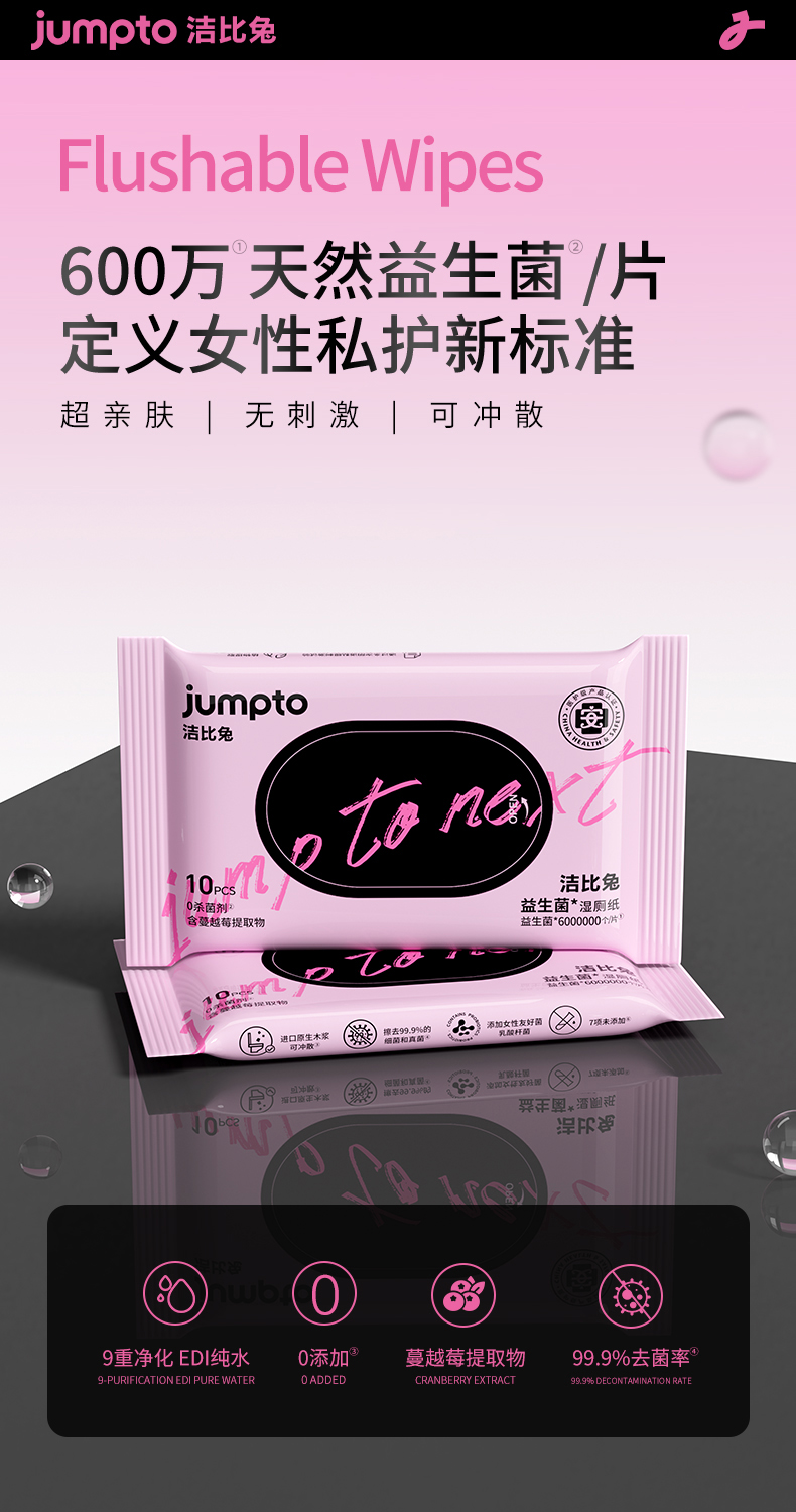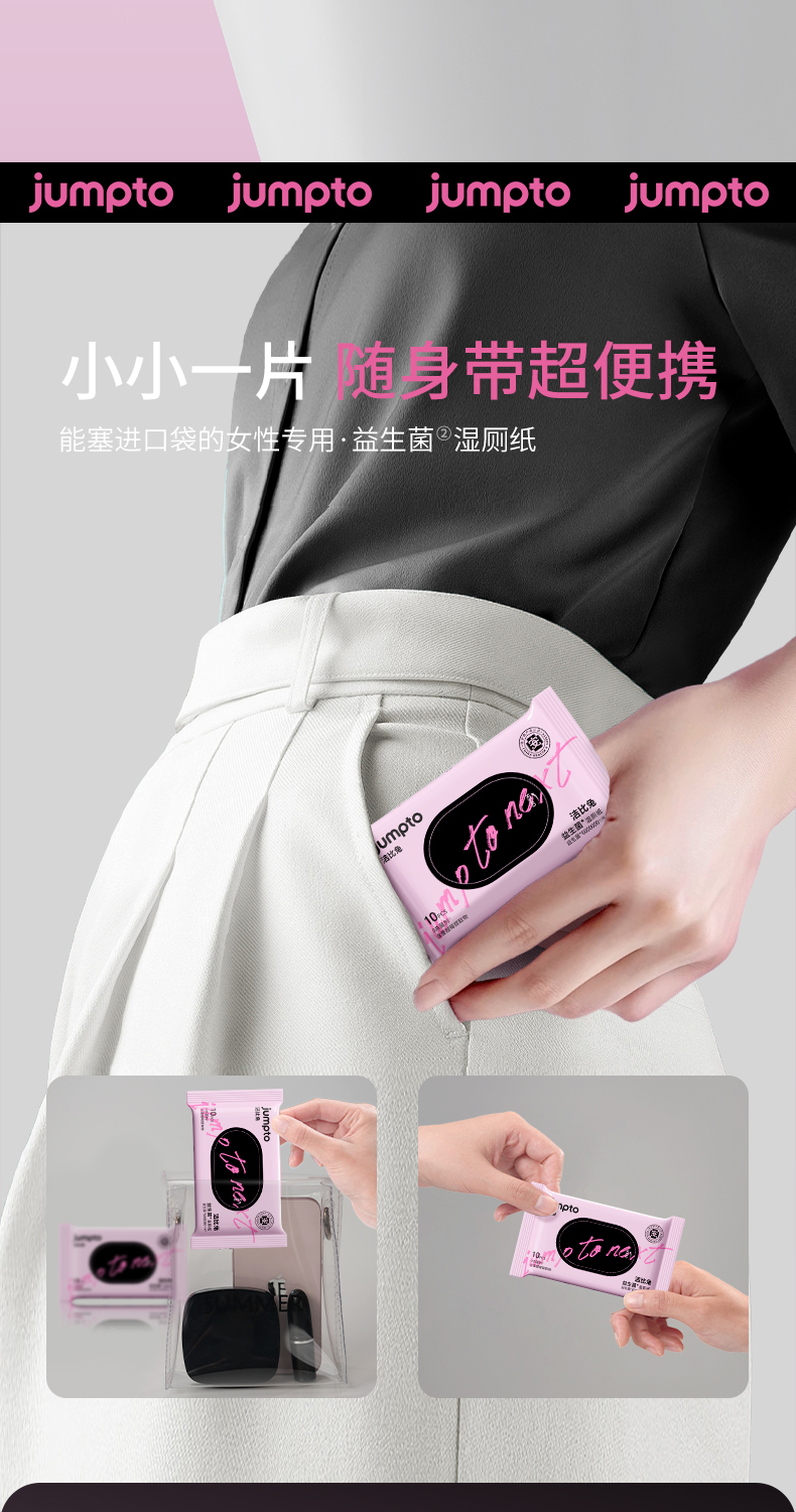洁比兔益生菌湿厕纸10抽/包姨妈期亲密前后女性专用湿巾