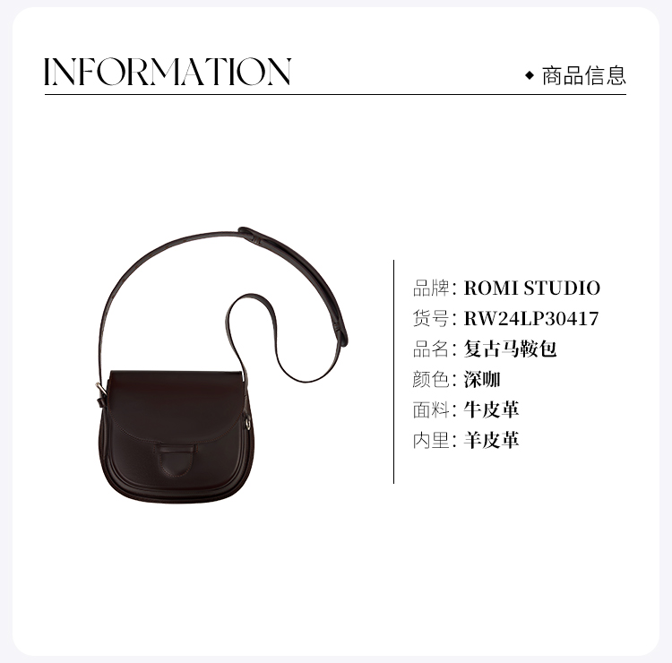 ROMI STUDIO“复古优雅”羊京绒拼头层牛皮单肩马鞍包 RW24LP30417【发货时效25天】