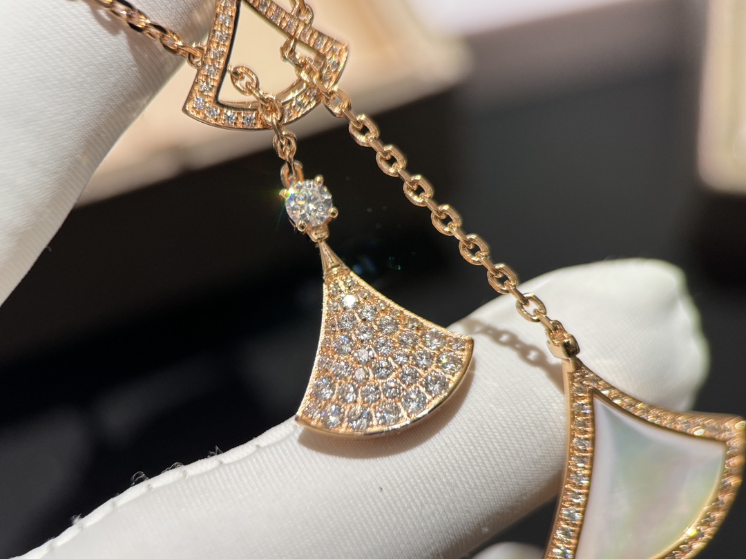 扇形宝石豪华项链?? DIVAS'DREAM新款项链|明星同款 镂空扇子+满钻扇子+白贝母扇子 非常温柔知性的一款 各款式的扇子组成一条完美的项链