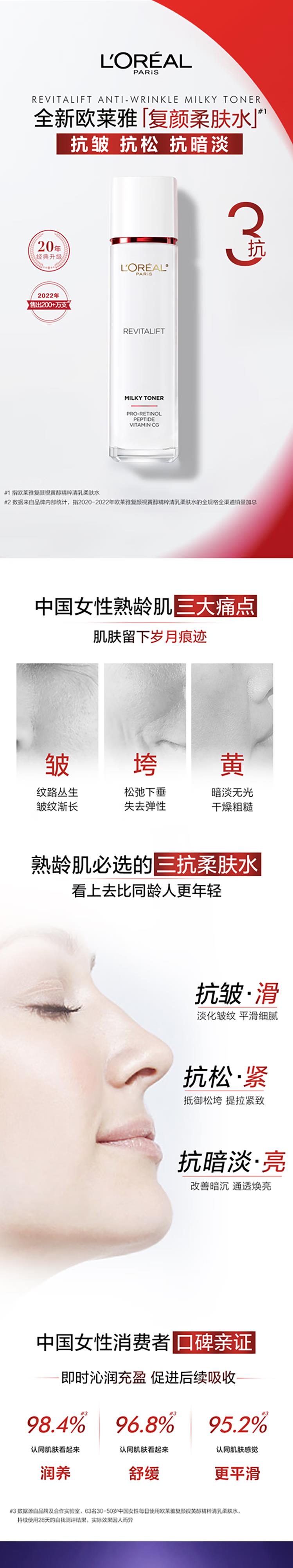 欧莱雅复颜视黄醇精粹清乳柔肤水130ml