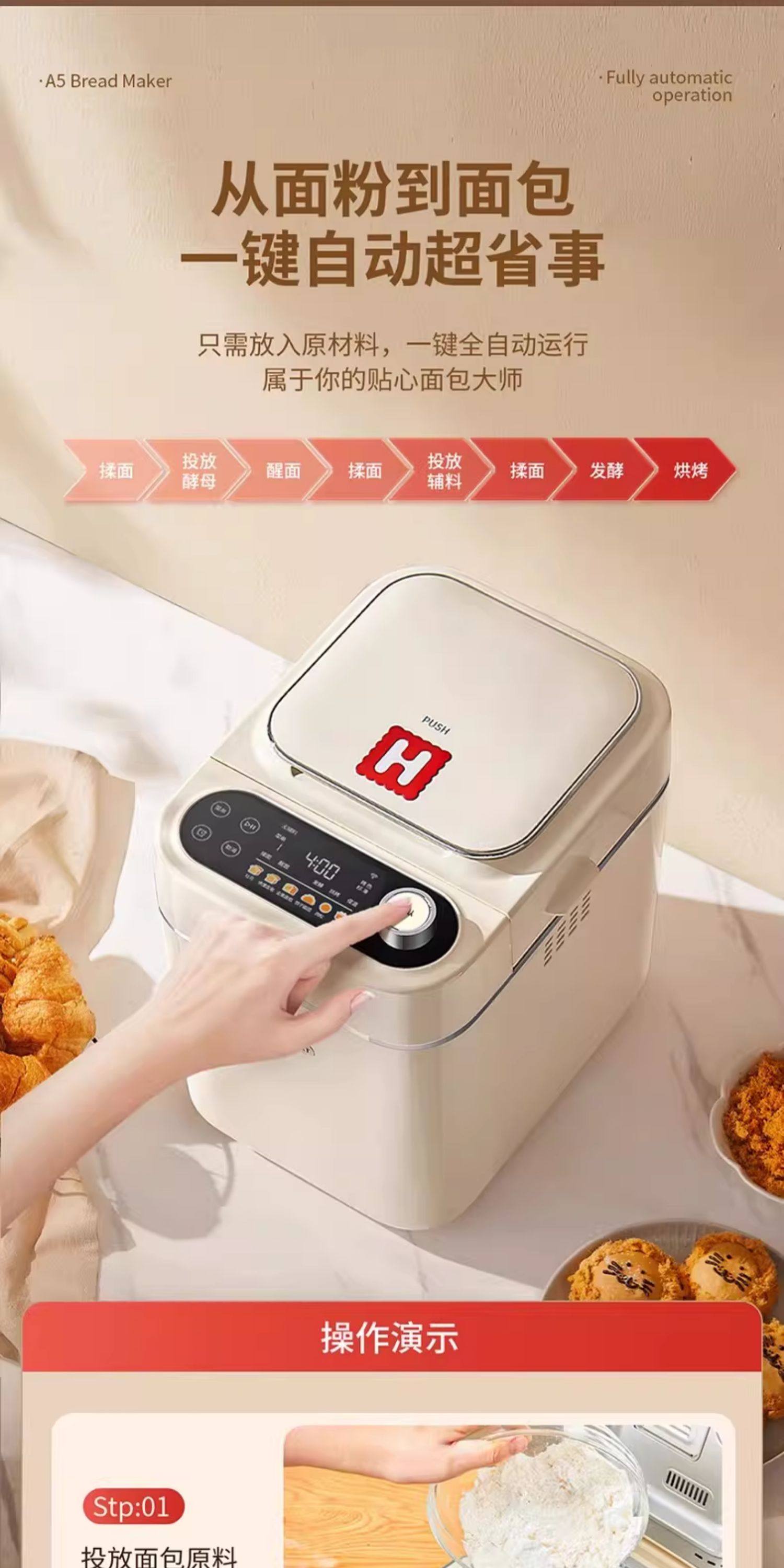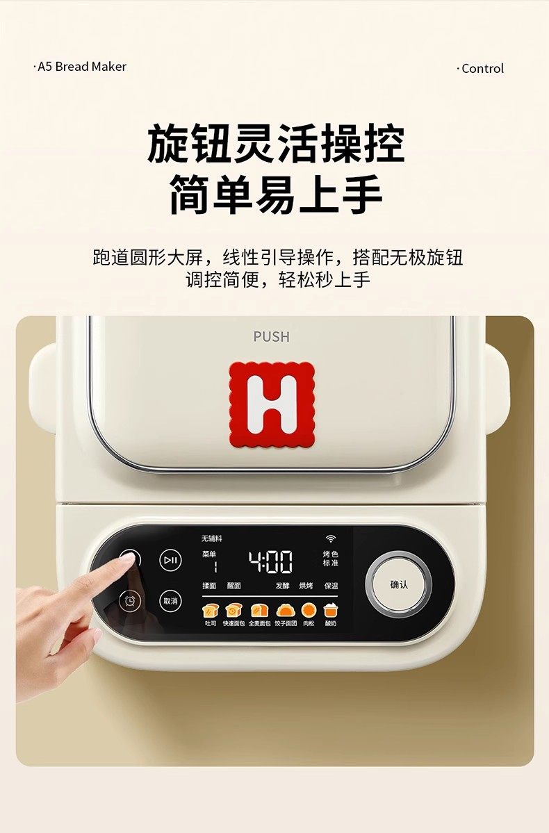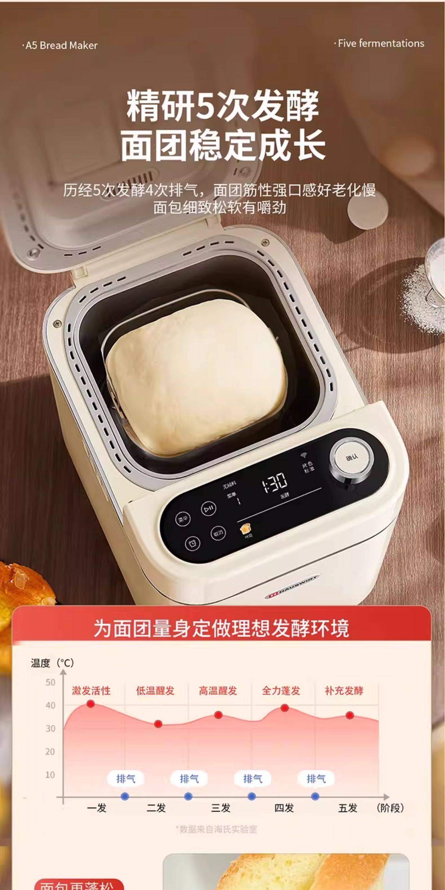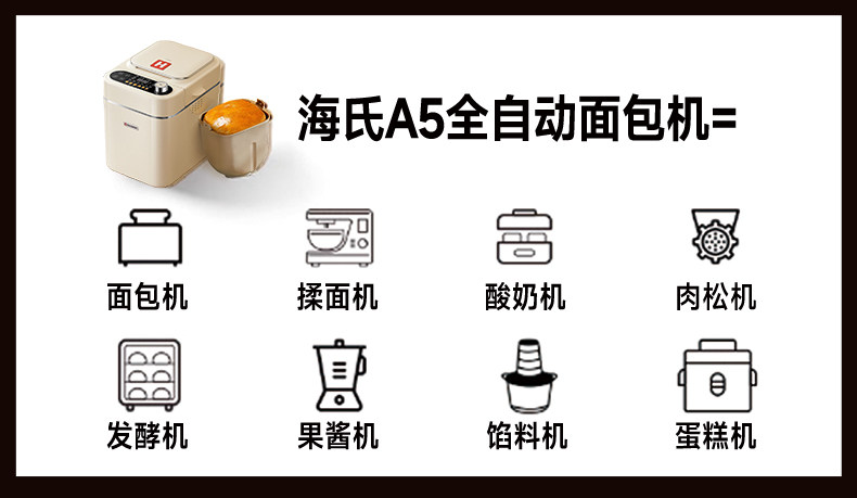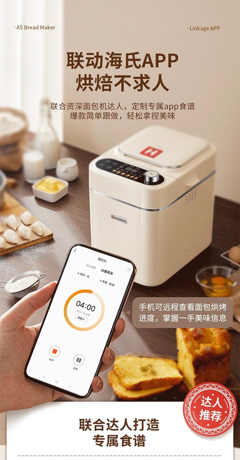 海氏A5全自动面包机多功能小型和面机发酵早餐烹饪机 不支持七天无理由