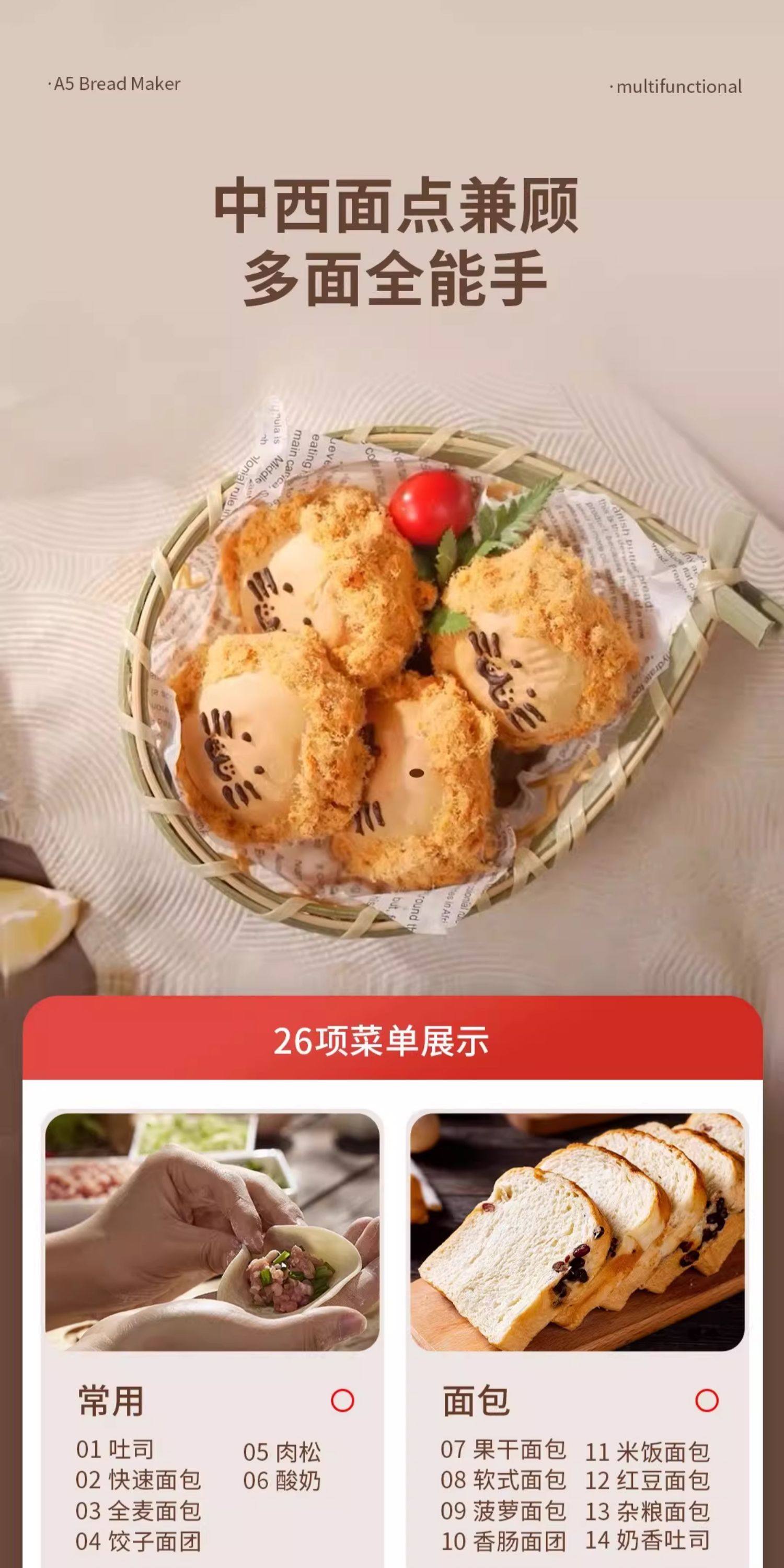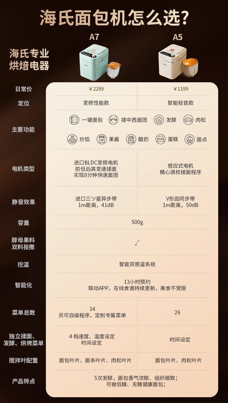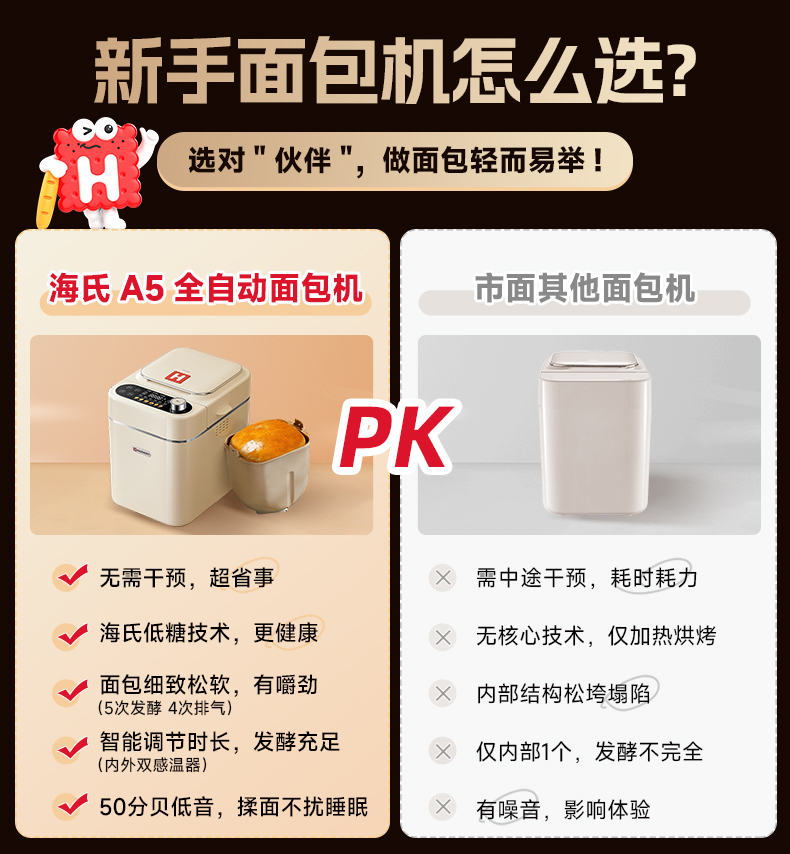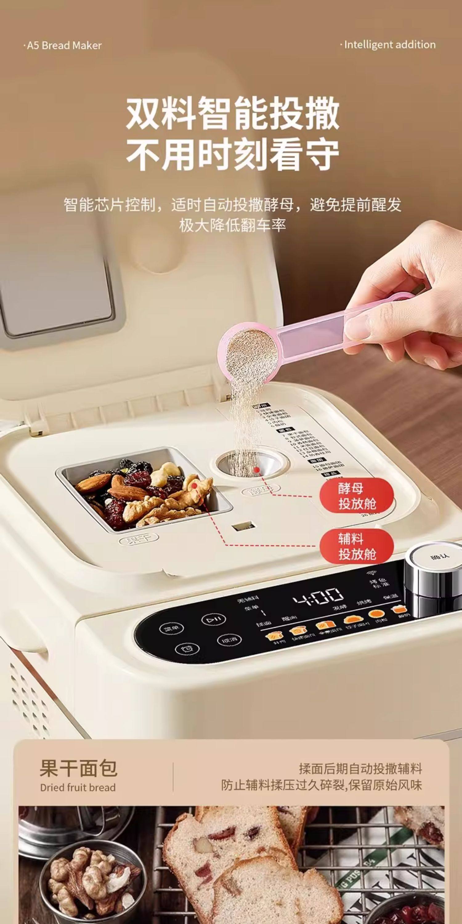 海氏A5全自动面包机多功能小型和面机发酵早餐烹饪机 不支持七天无理由