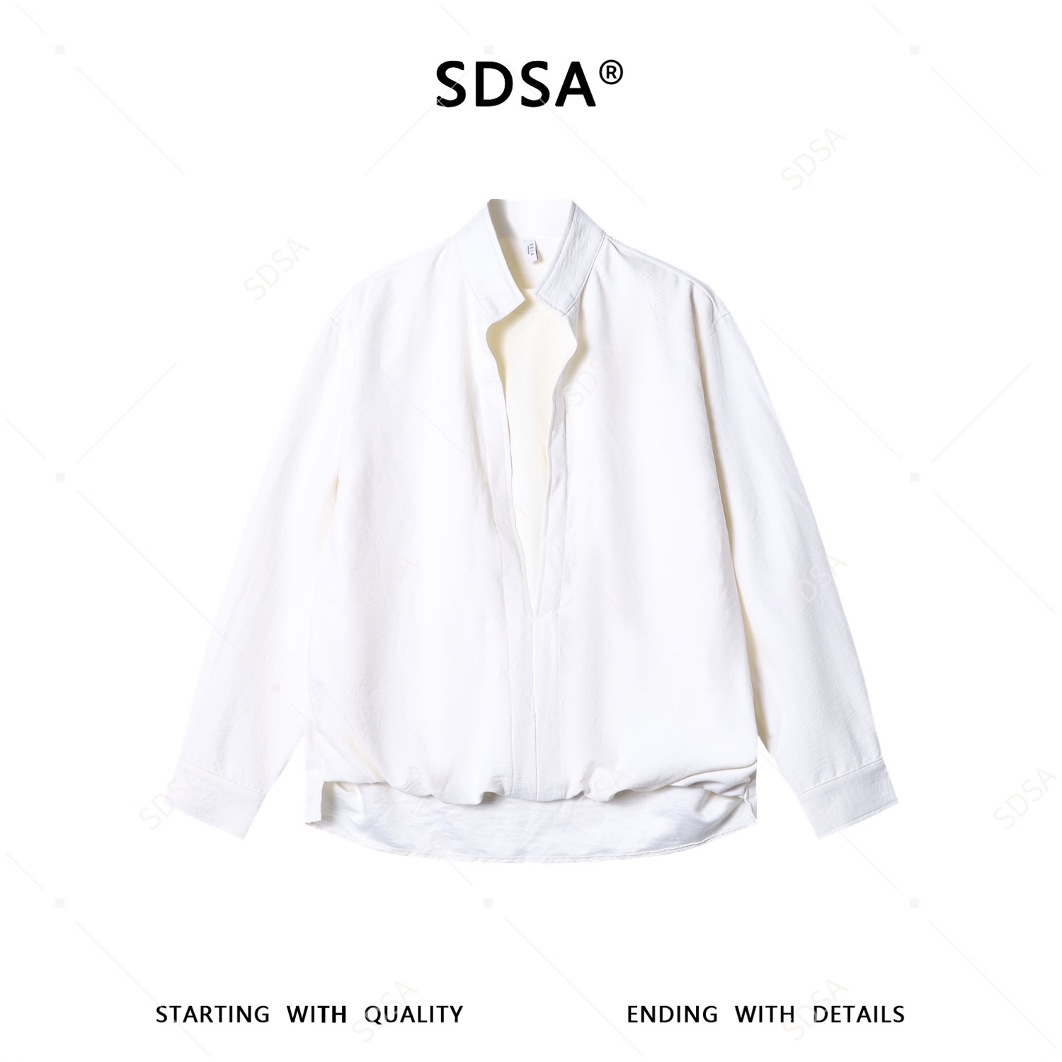 SDSA男装2026新款高贵轻奢韩版简约拼接前短后长套头立领衬衫百搭