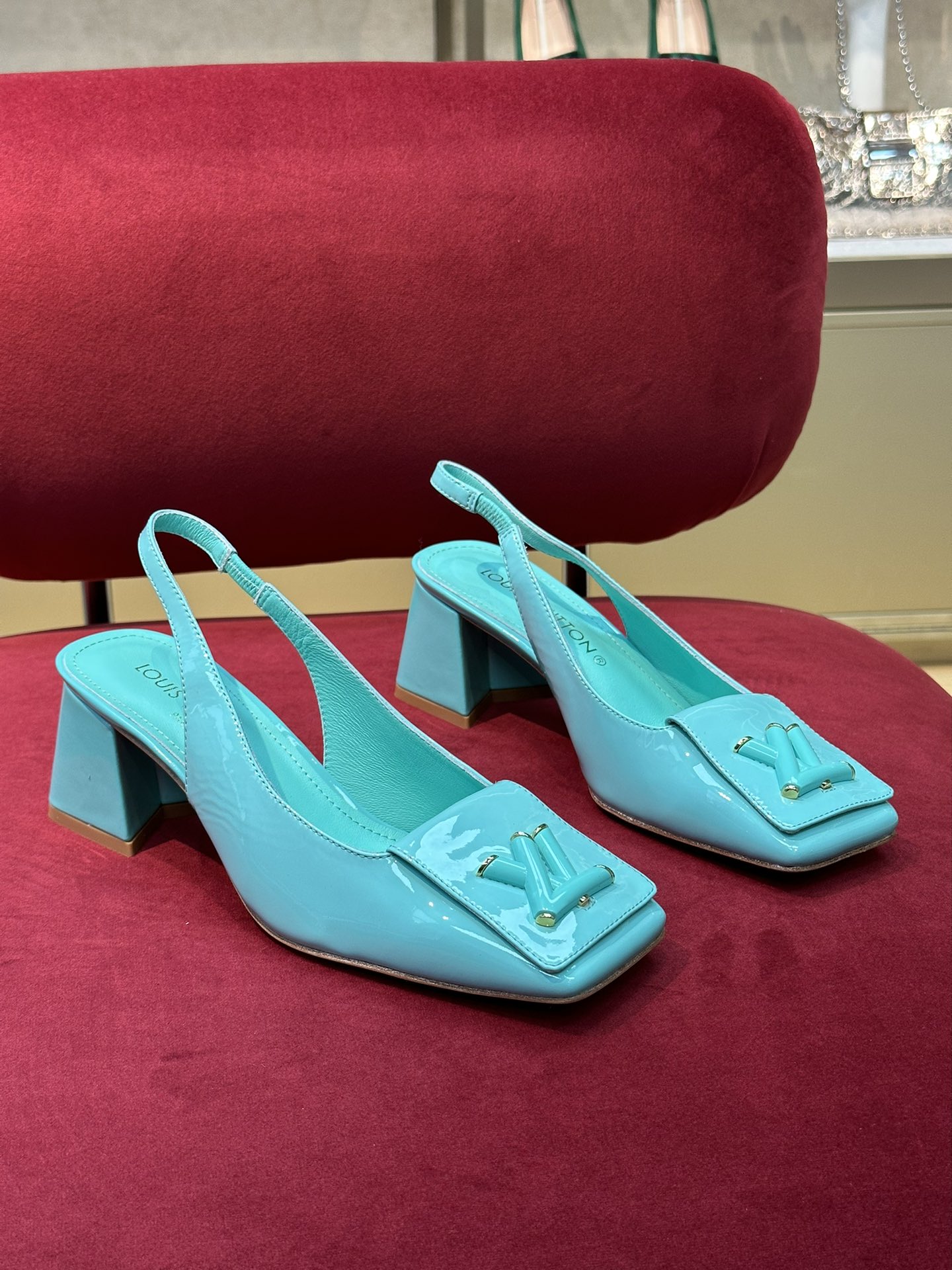 L家Shake 露跟高跟鞋选用高亮漆面牛皮革,以瞩目亮色洋溢摩登风尚。鞋面的心标识源自 Twist 手袋的标志性锁扣,稳固鞋跟呈现V形轮廓,内底压印大号品牌标志