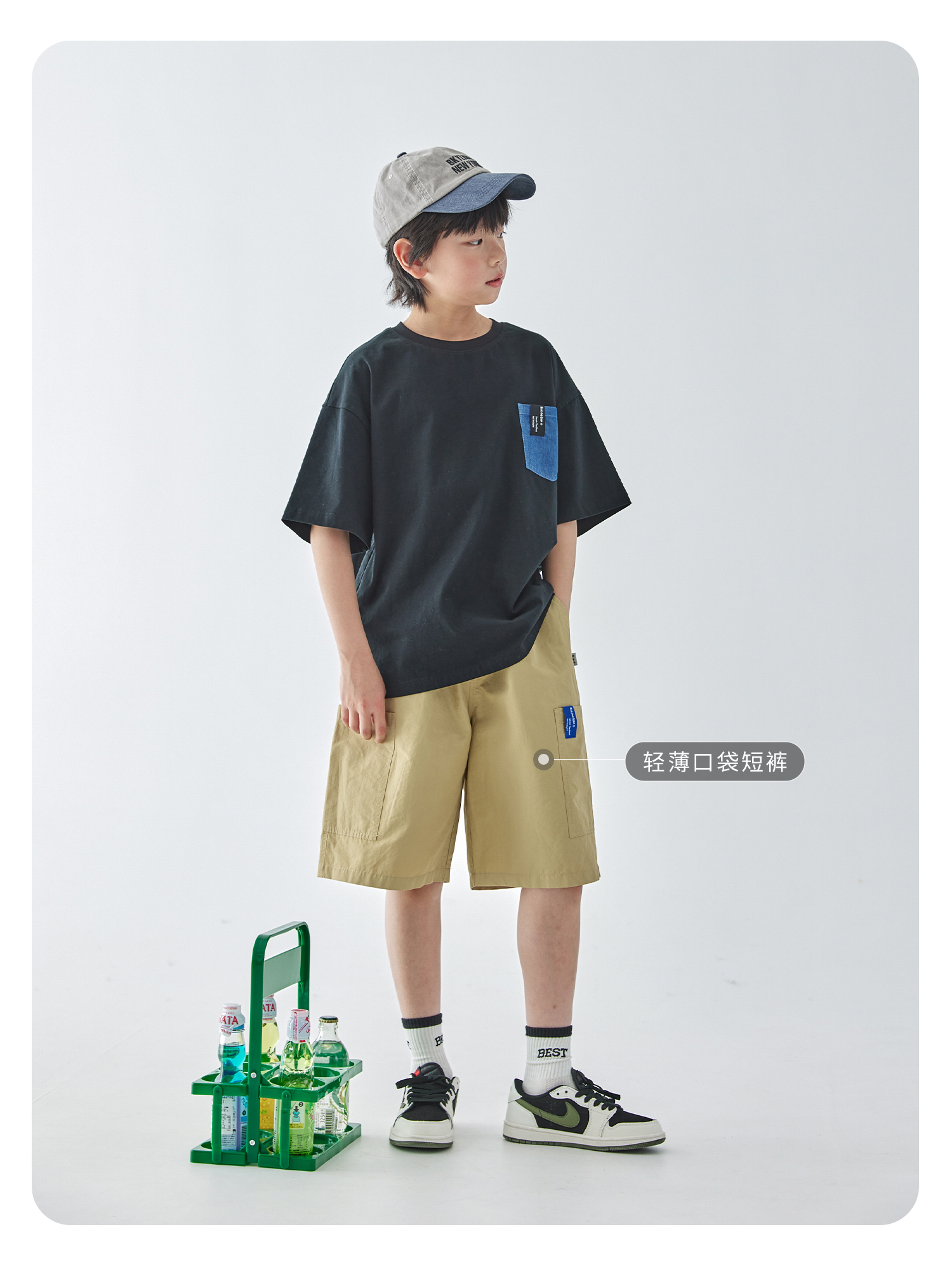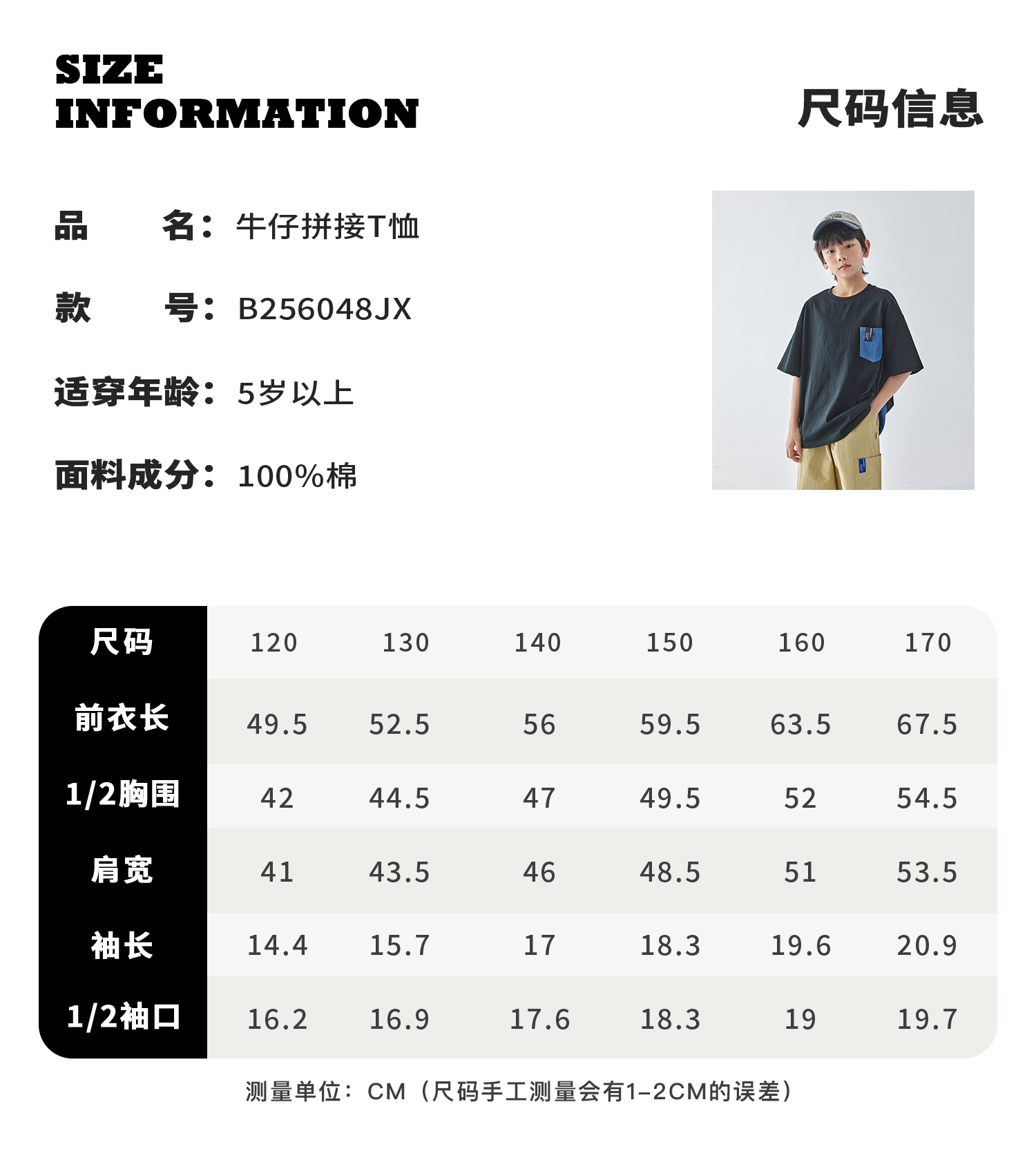 蓝汽水牛仔拼接短袖860B256048JX 商品图4