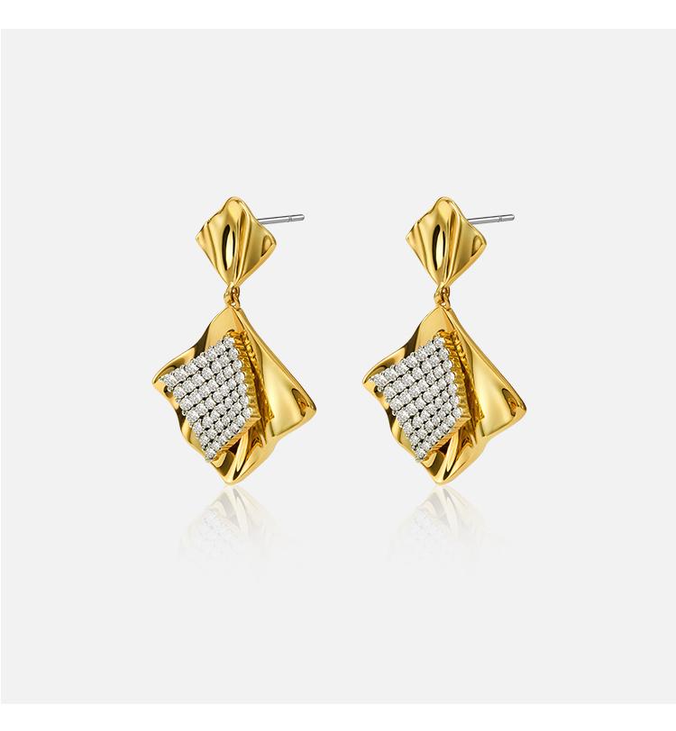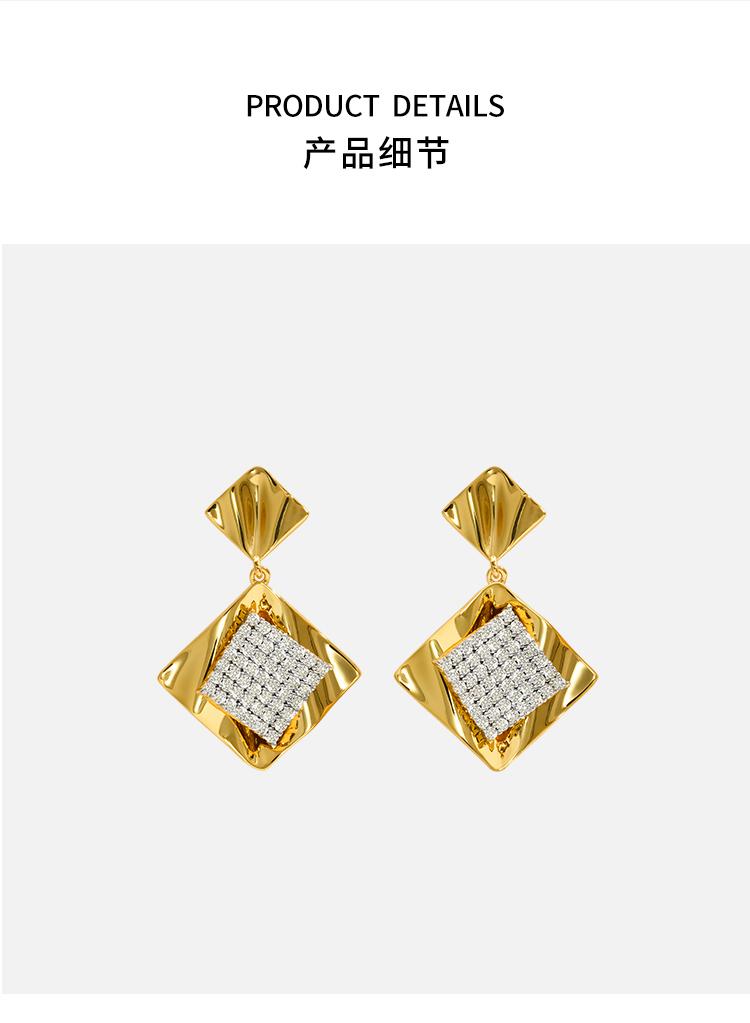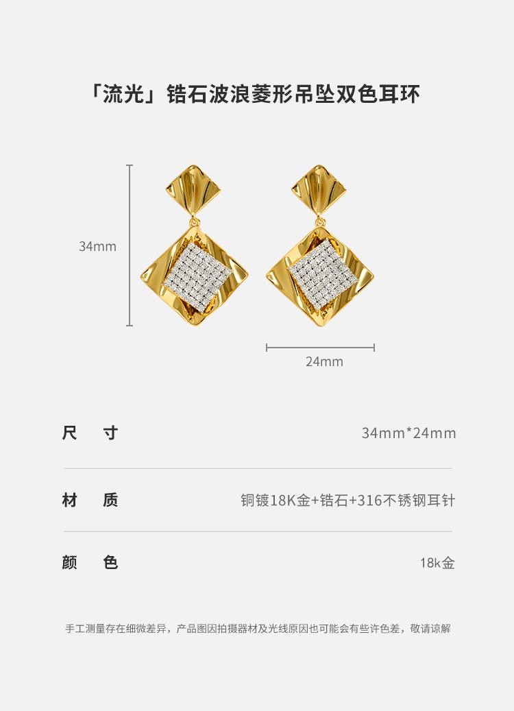 ANGEL ISLAND 「流光」锆石波浪菱形吊坠双色耳环