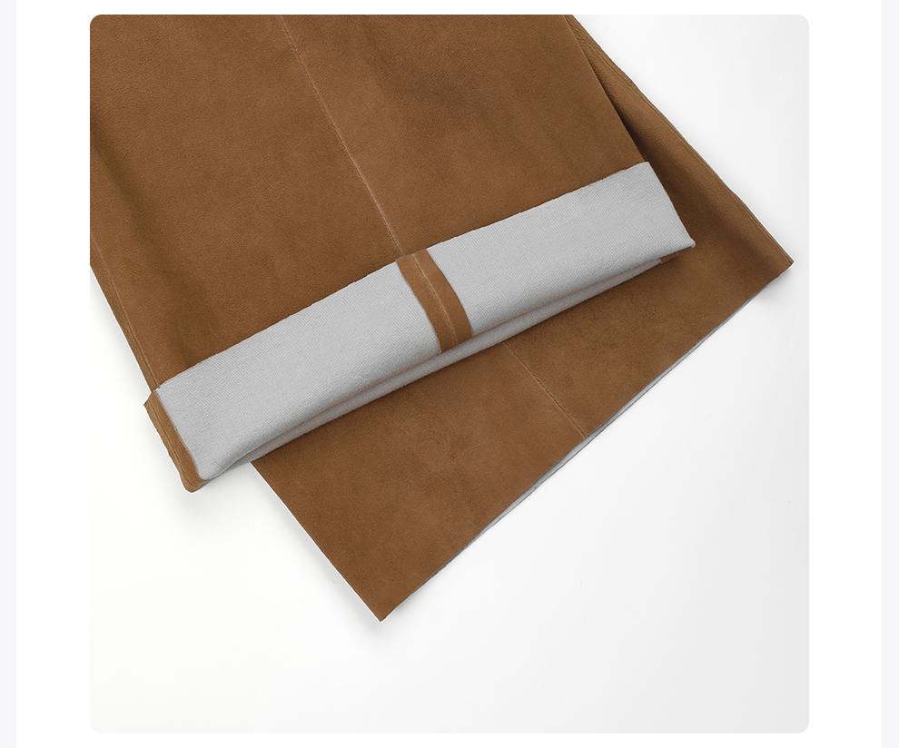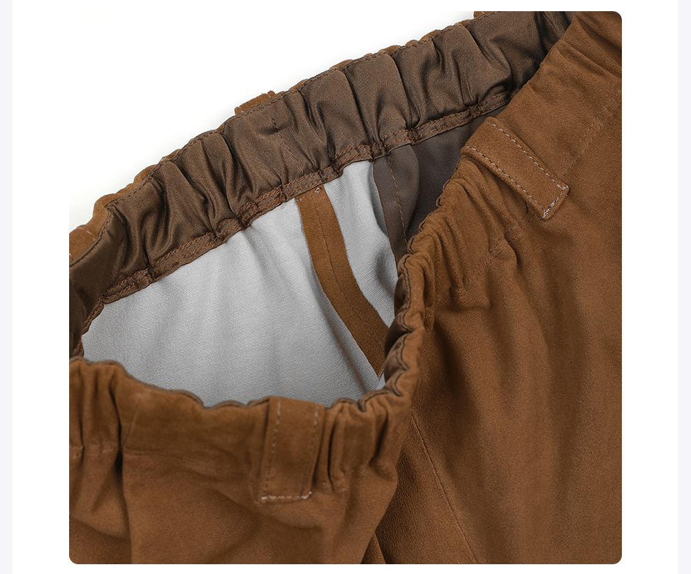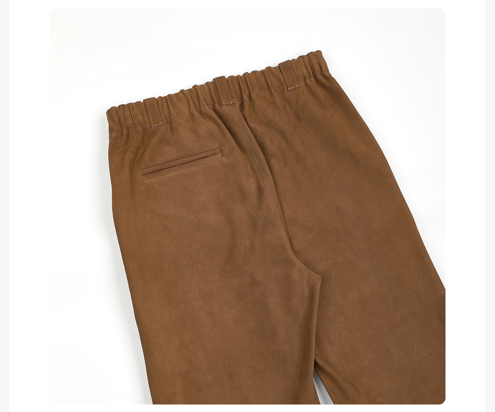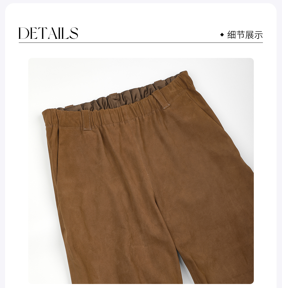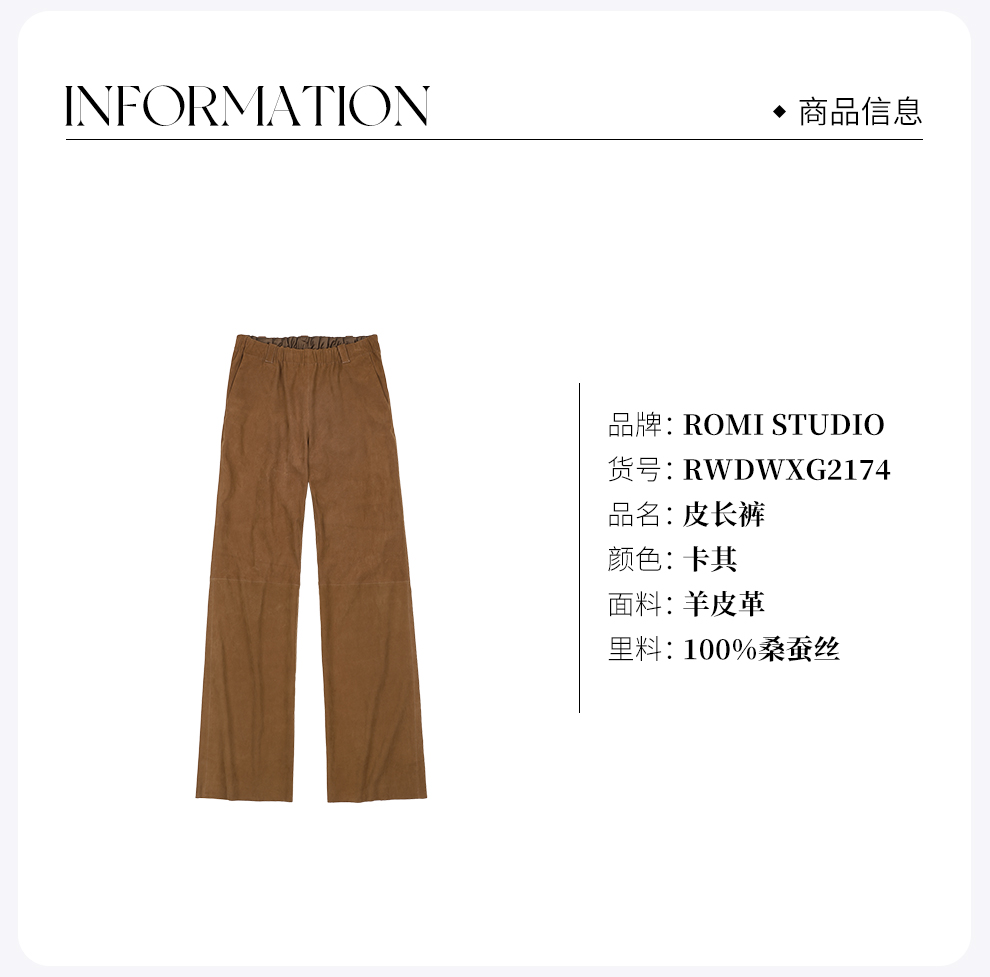 ROMI STUDIO“棕标系列”羊绒弹力皮松紧高腰直筒皮裤RWDWXG2174