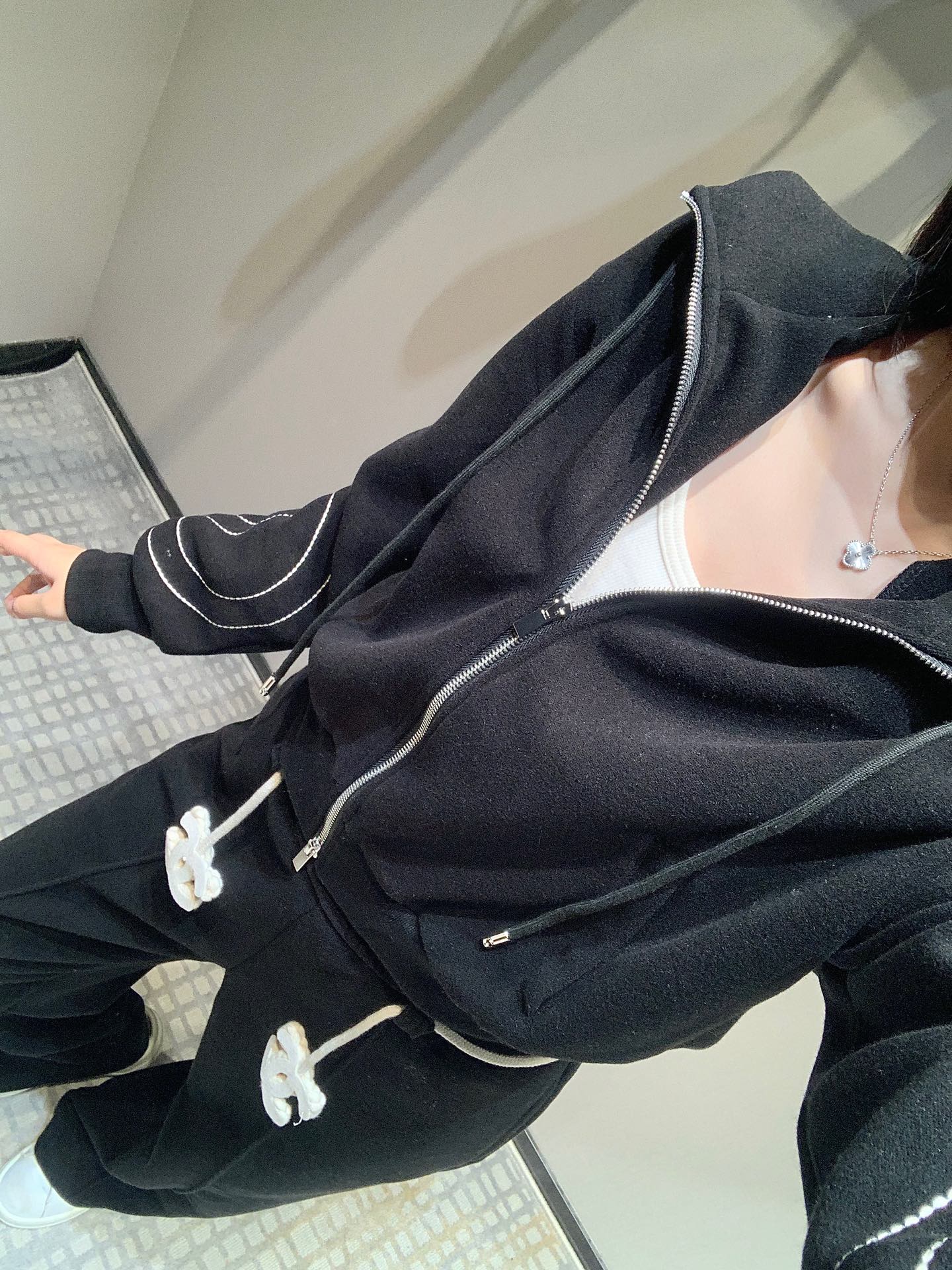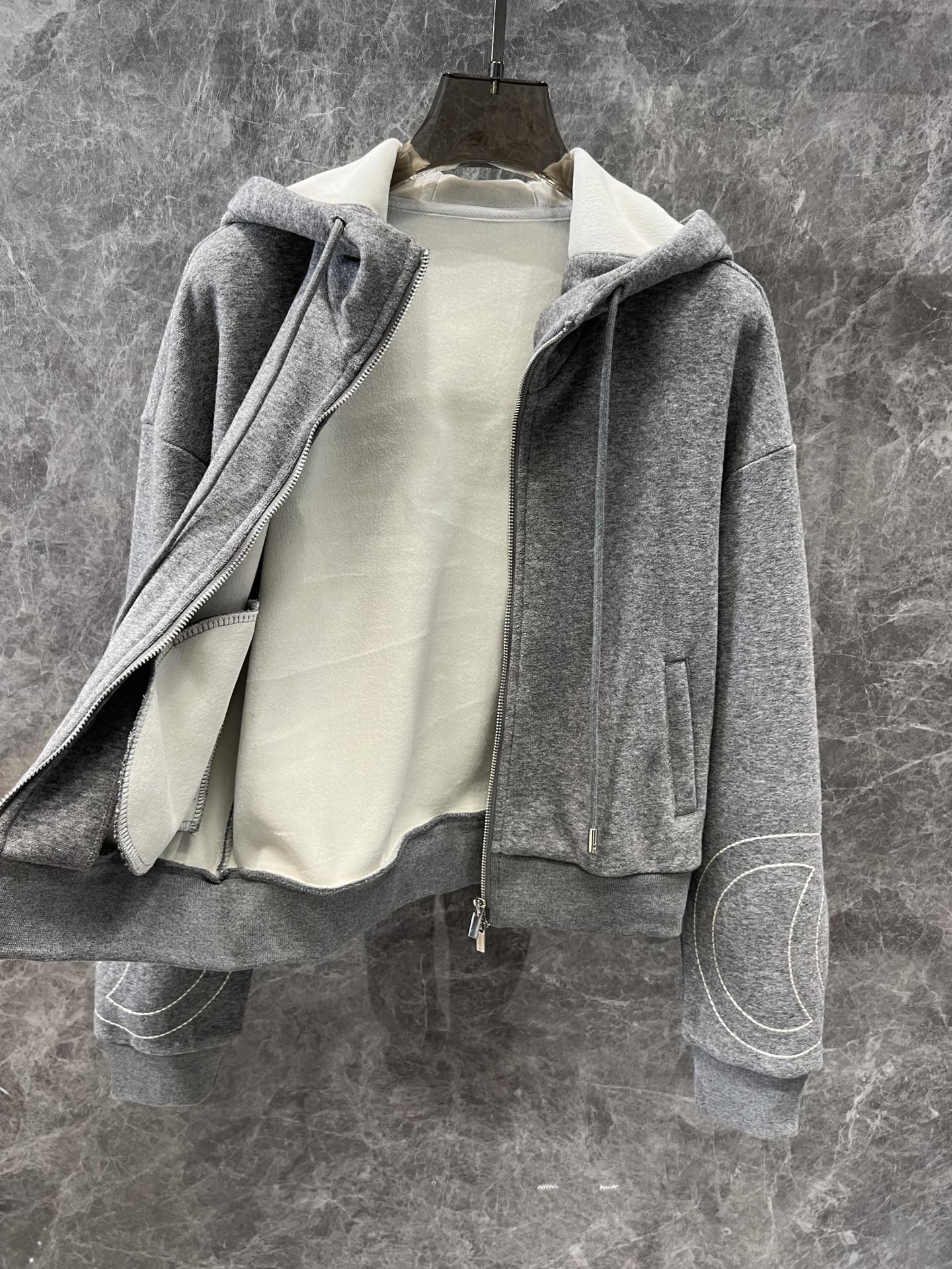 高端定制宽松版拉链卫衣外套,搭配松紧腰休闲裤极简主义风法式优雅的慵懒风,休闲又时髦!立体剪裁版版型可甜可盐减龄少女风。多种穿法百搭上身显瘦又高挑!强烈推荐自留款!
