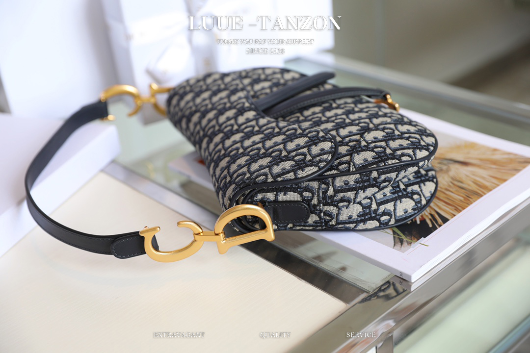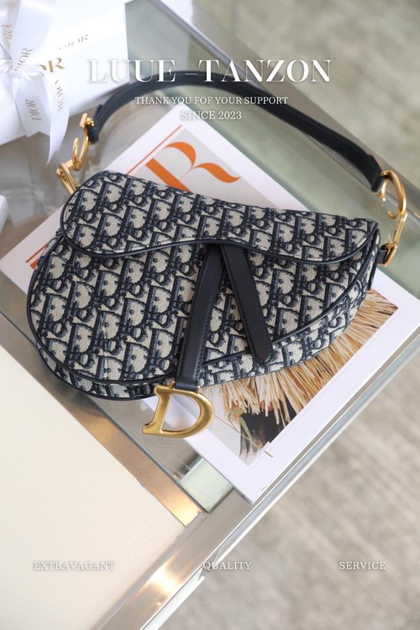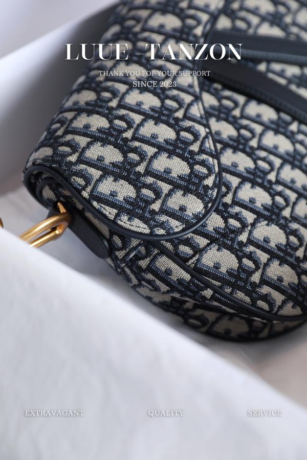 蓝色Dior Oblique提花帆布马鞍配以牛皮革细节。全铜厚金复古扣配饰,经典重温zp级别品质开发