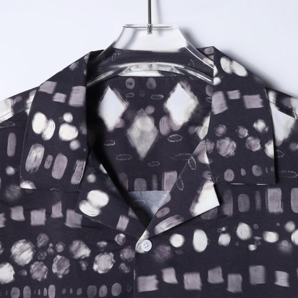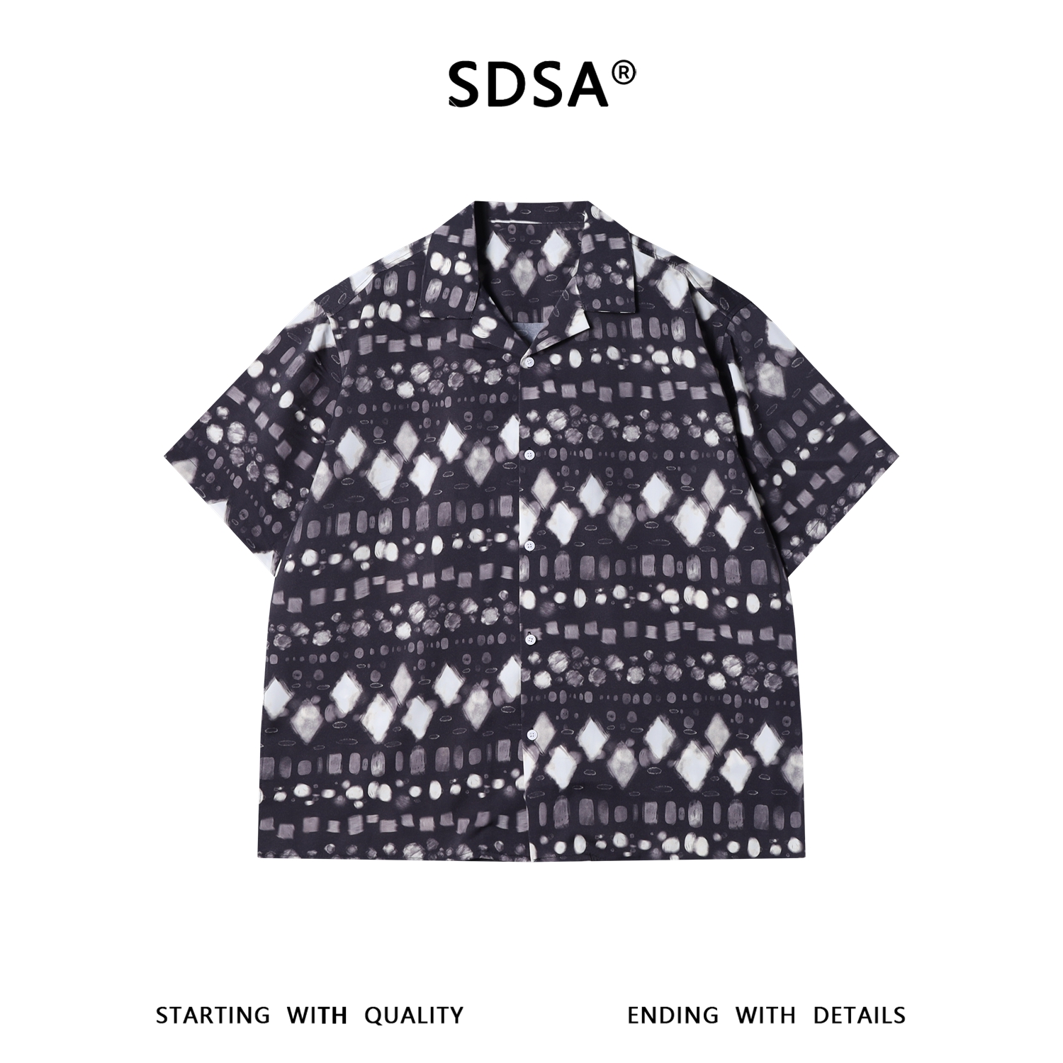 SDSA男装2026新款轻奢几何菱形满印古巴领短袖衬衫宽松复古上衣