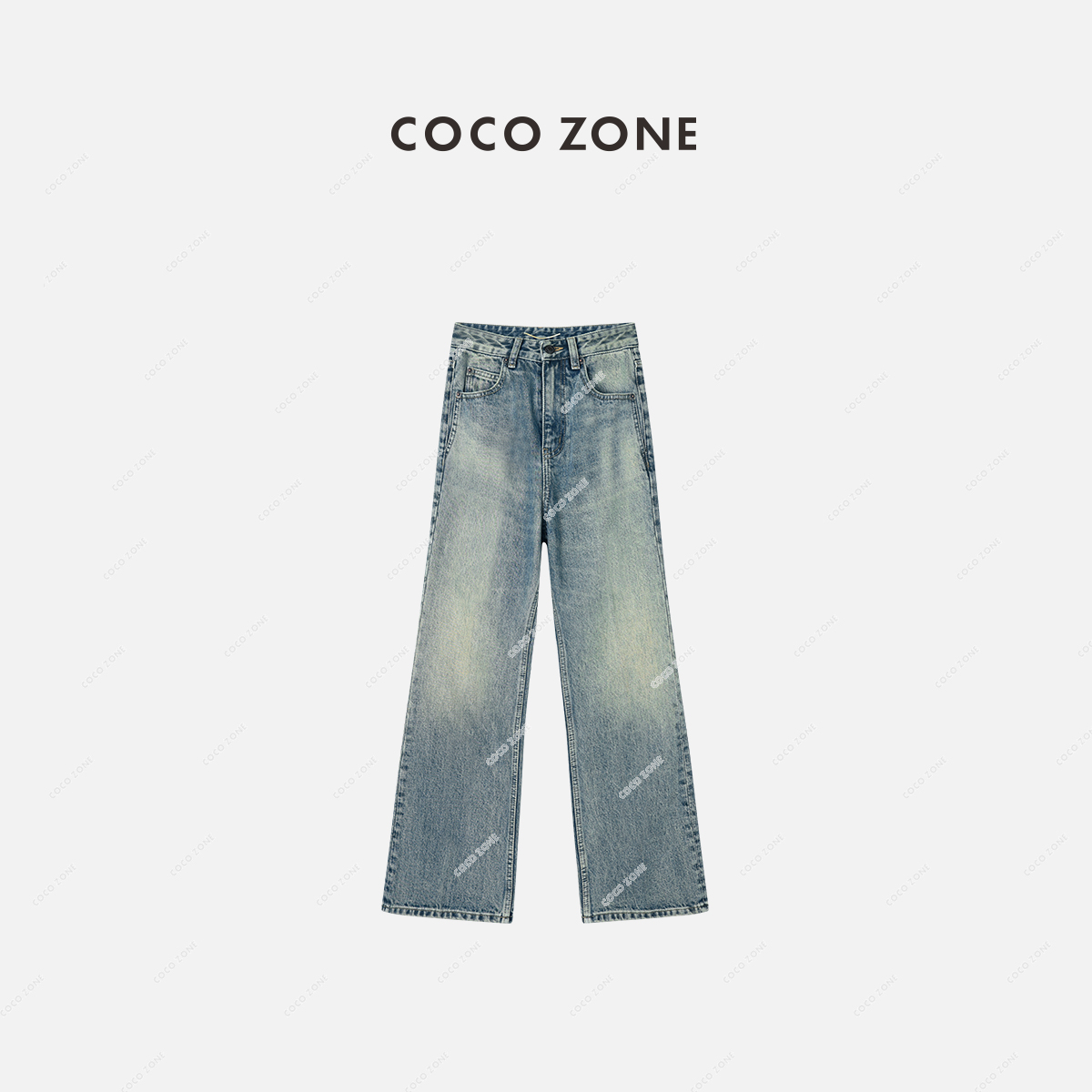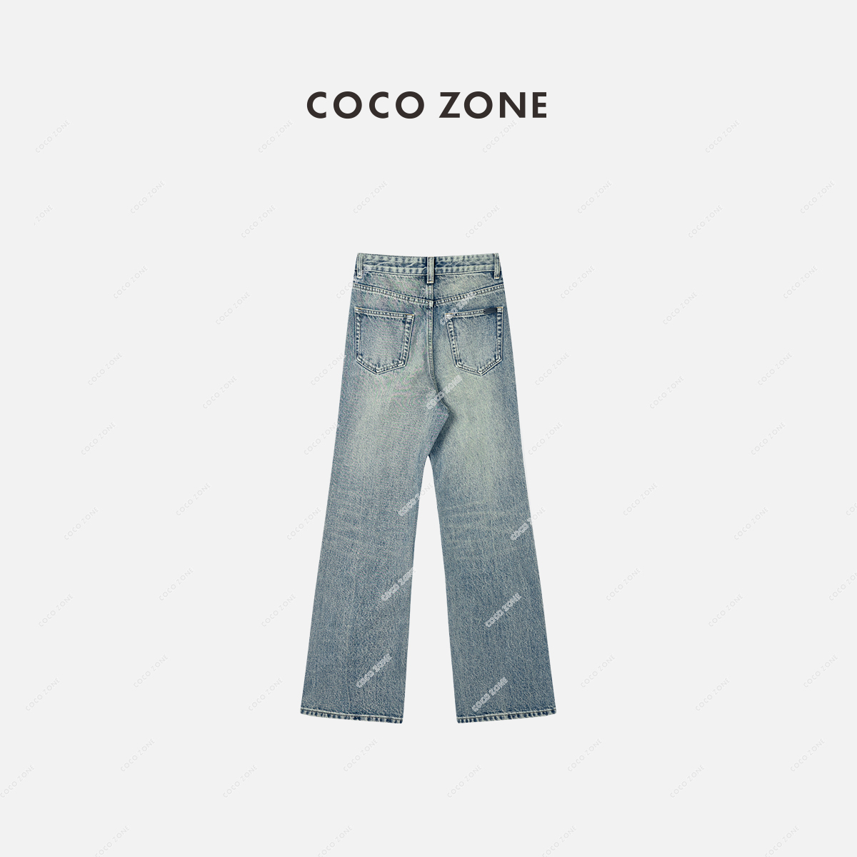 刘一一&COCOZONE“贵妇牛”复古修身显瘦直筒微喇牛仔裤23C19603