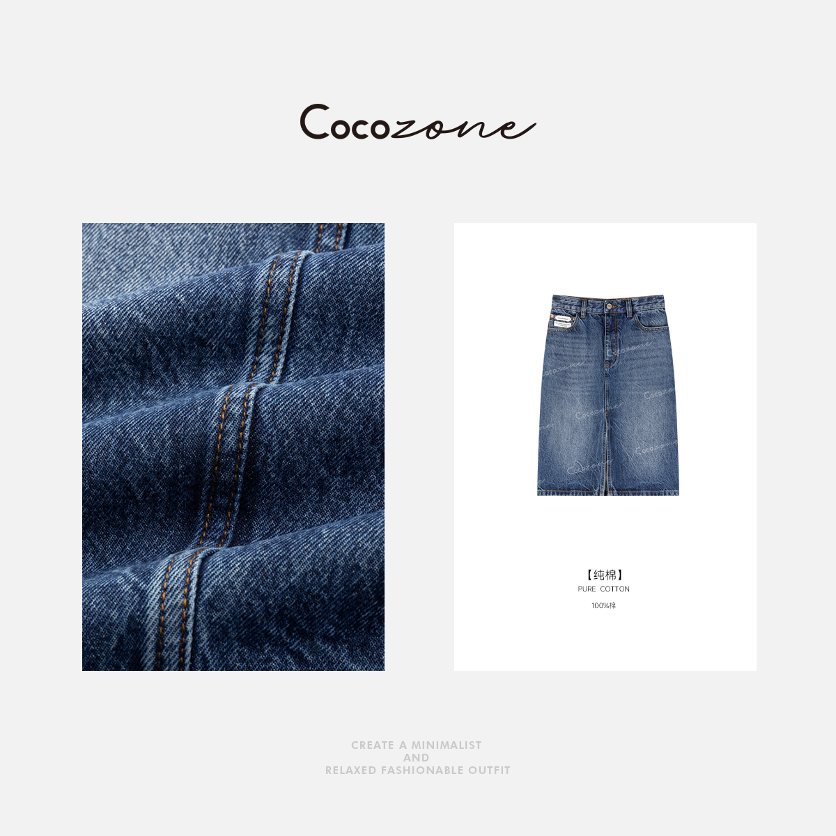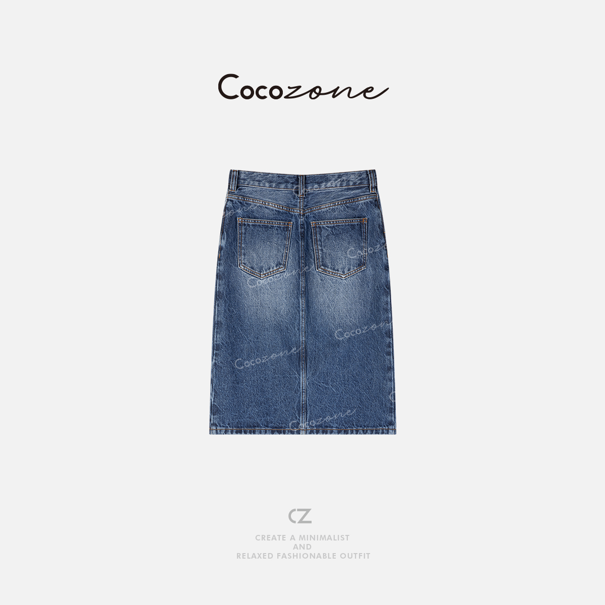 COCO ZONE 刘一一 设计感通勤显瘦前开叉牛仔半身裙CD2A0007