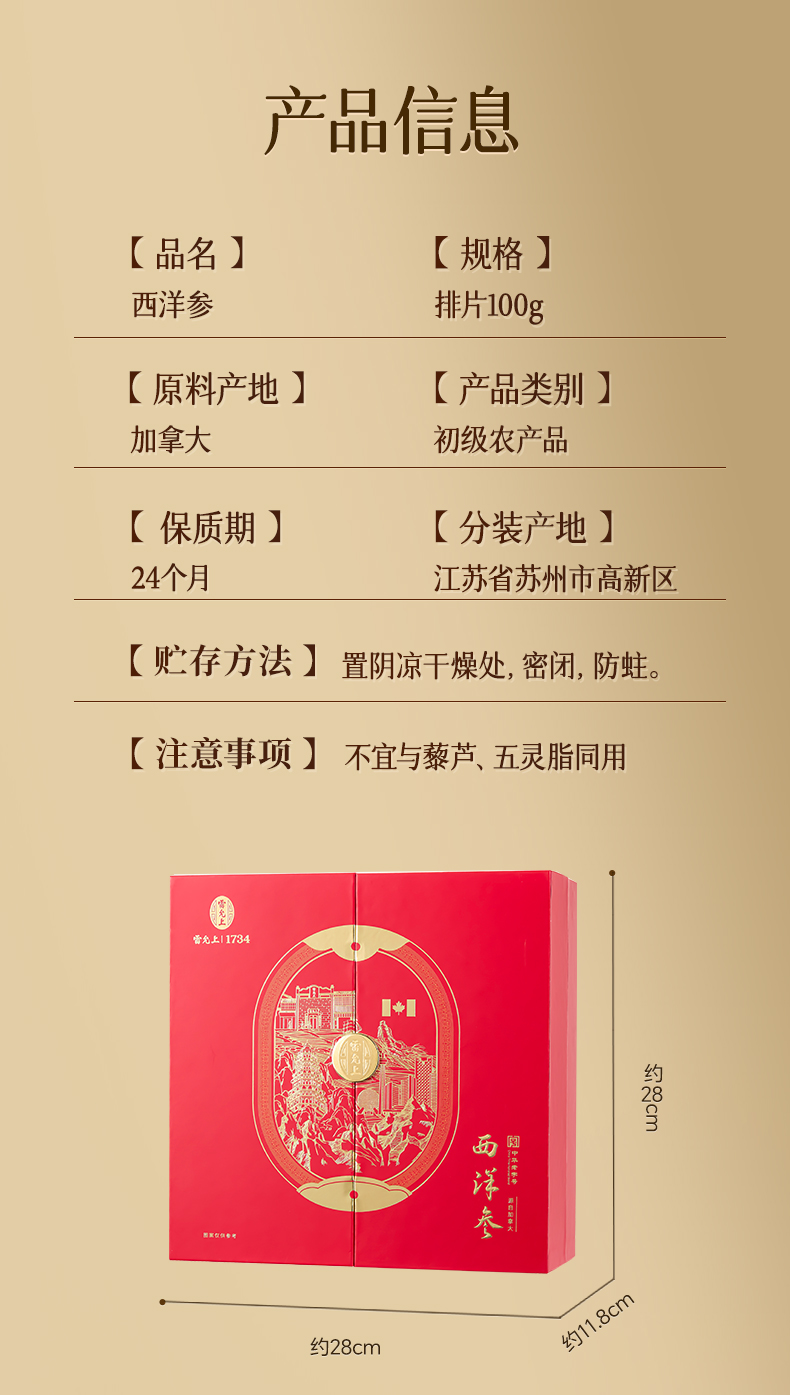 雷允上加拿大西洋参排片100g/盒(2-3cm)