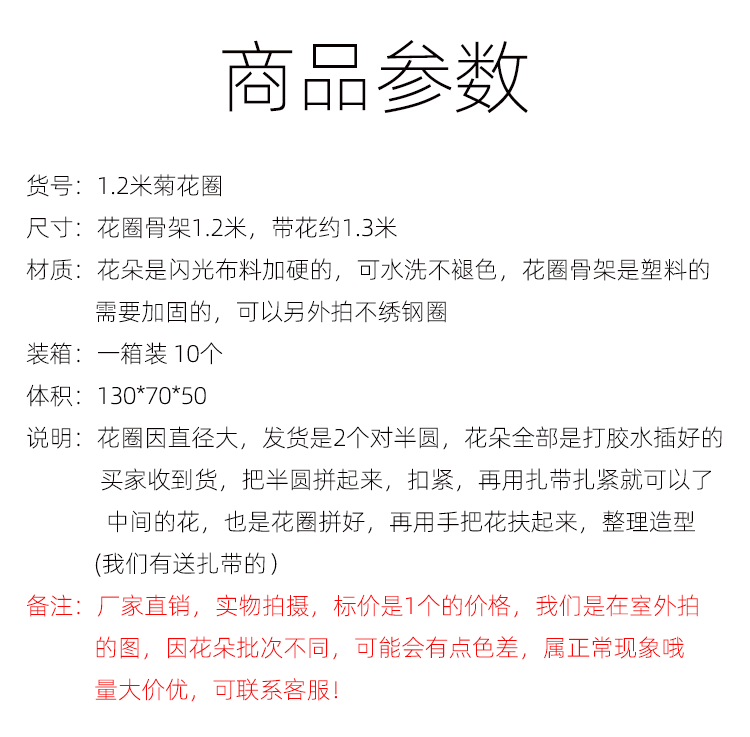 全黄仿真花圈1.3米绢花圈假花圈白事用菊花殡仪馆装饰花祭祀祭奠陵园 商品图0