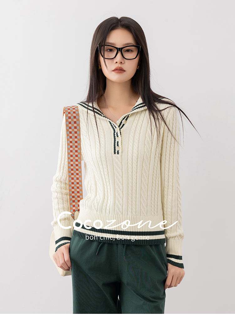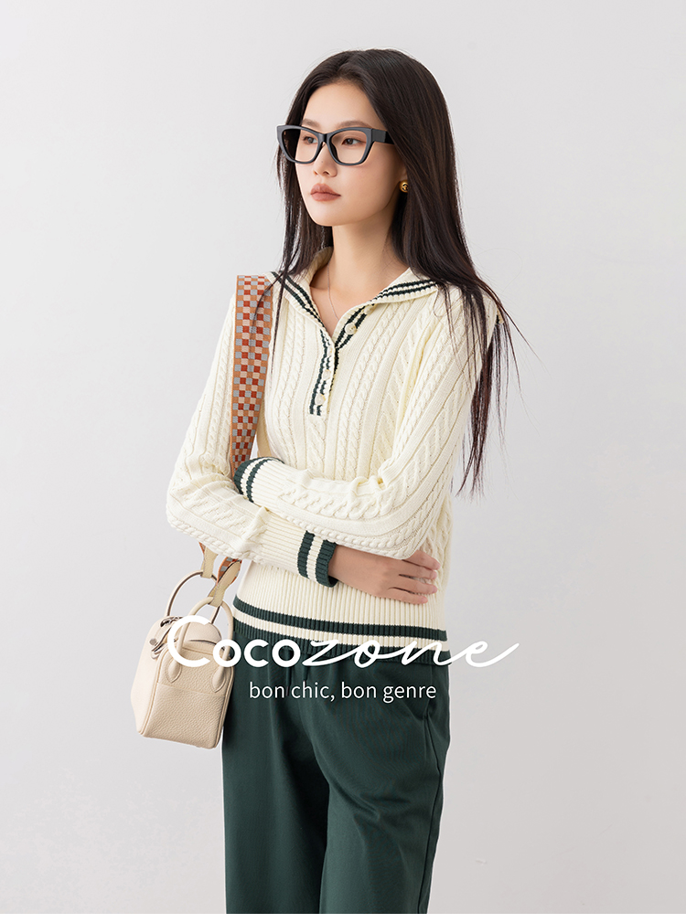 COCO ZONE 刘一一“氧气毛衣”100棉海军领毛织上衣 CD1A1165