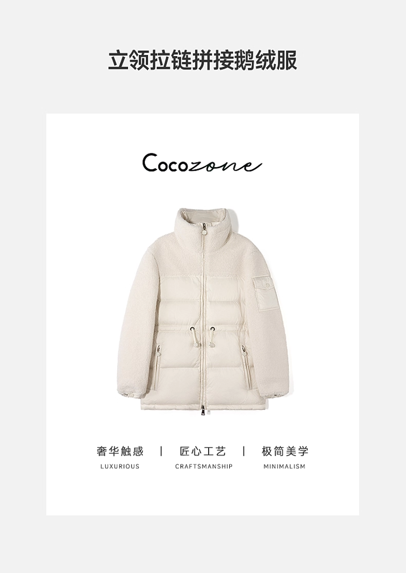 COCO ZONE 刘一一 "莱蒙鹅绒"立领拉链拼接鹅绒服 CD2A2580