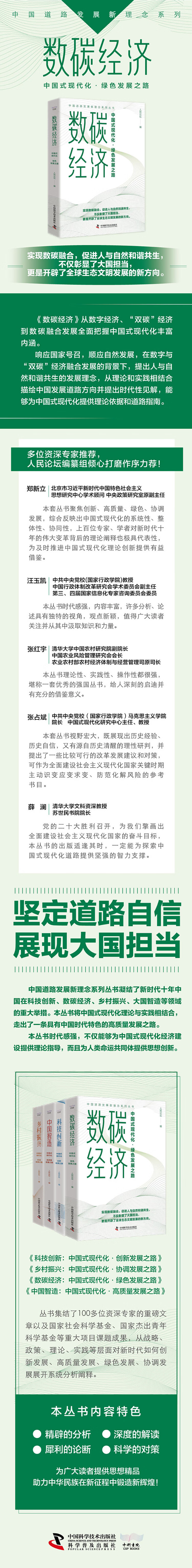 1.多位权威专家推荐,人民论坛编纂组倾心打磨作序力荐! 2.方向决定道路,道路决定命运。新时代十年来,之所以能够创造出前所未有的伟大成就,走出了正确道路是根本原因。本丛书凝结了上百位专家的理论指导和实践依据,从多个方面阐述了中国式现代化的发展规律和趋势,为中国式现代化提供发展新思路。 3.本丛书凝结了新时代十年中国在科技创新、数碳经济、乡村振兴、国内智造等重要经济领域的重大举措,走出了一条具有中国时代特色的高质量发展之路,本丛书时代感强,能够为中国式现代化经济建设提供理论指导,为人类命运共同体提供思想创新。 《数碳经济》响应国家号召,顺应自然发展,在双碳经济、数字经济融合发展的背景下,提出人与自然和谐共生的发展理念,从理论和实践相结合描绘中国发展道路方向并提出时代性见解,能够为中国式现代化提供理论依据和道路指南。