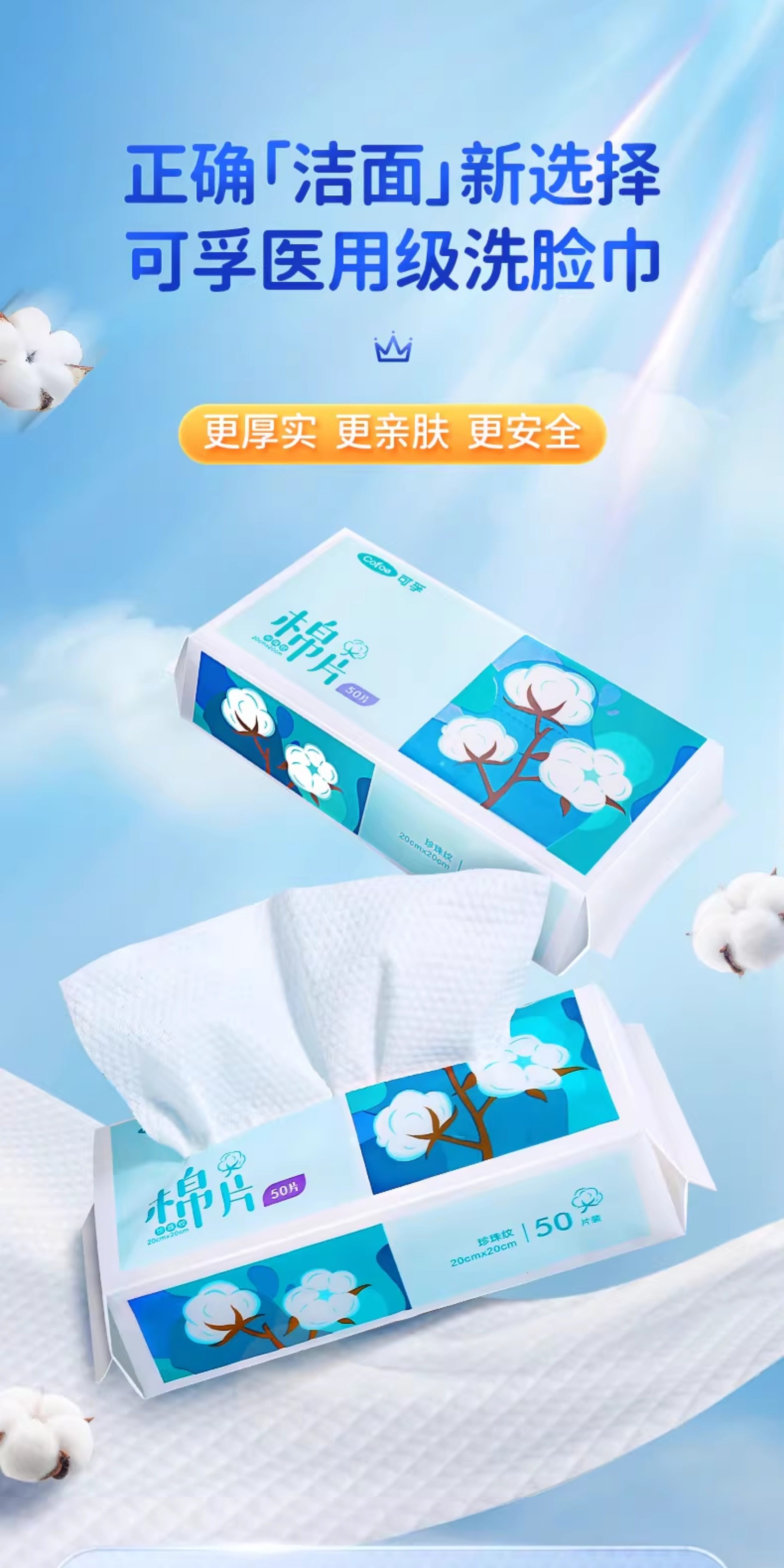 可孚一次性洗脸巾棉柔加大加厚干湿洁面婴儿抽取式洗面擦脸