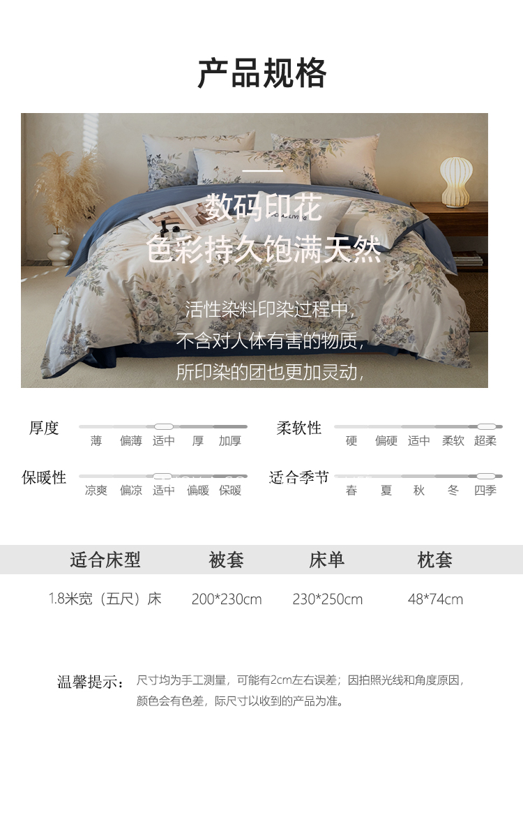 洁丽雅(Grace)澜风.40支精梳棉数码印花四件套JLY25606